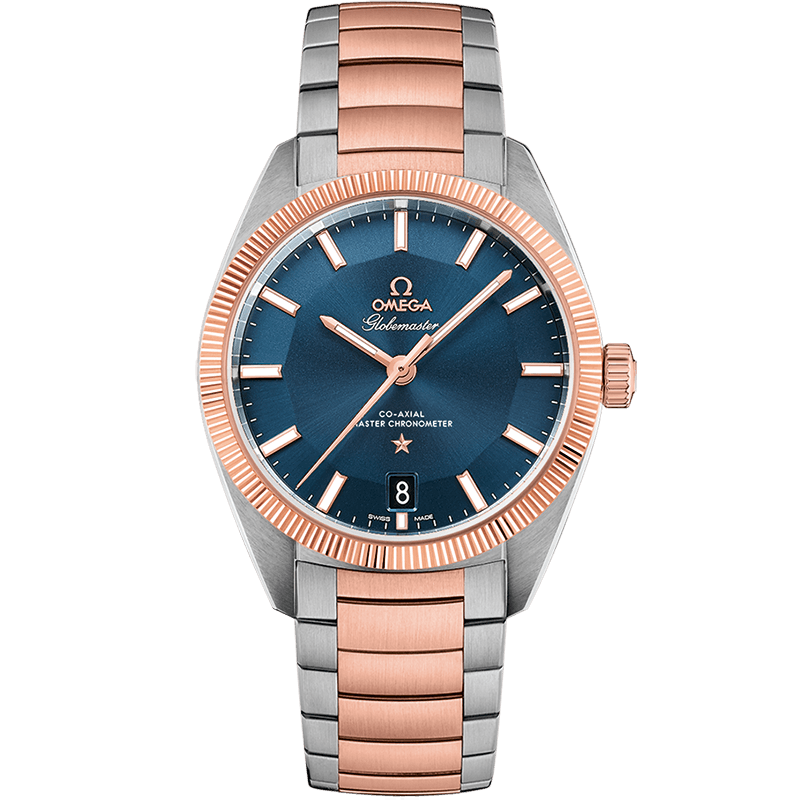 Omega 130.20.39.21.03.001 Globemaster Edelstahl / Sedna Gold / Blau / Armband