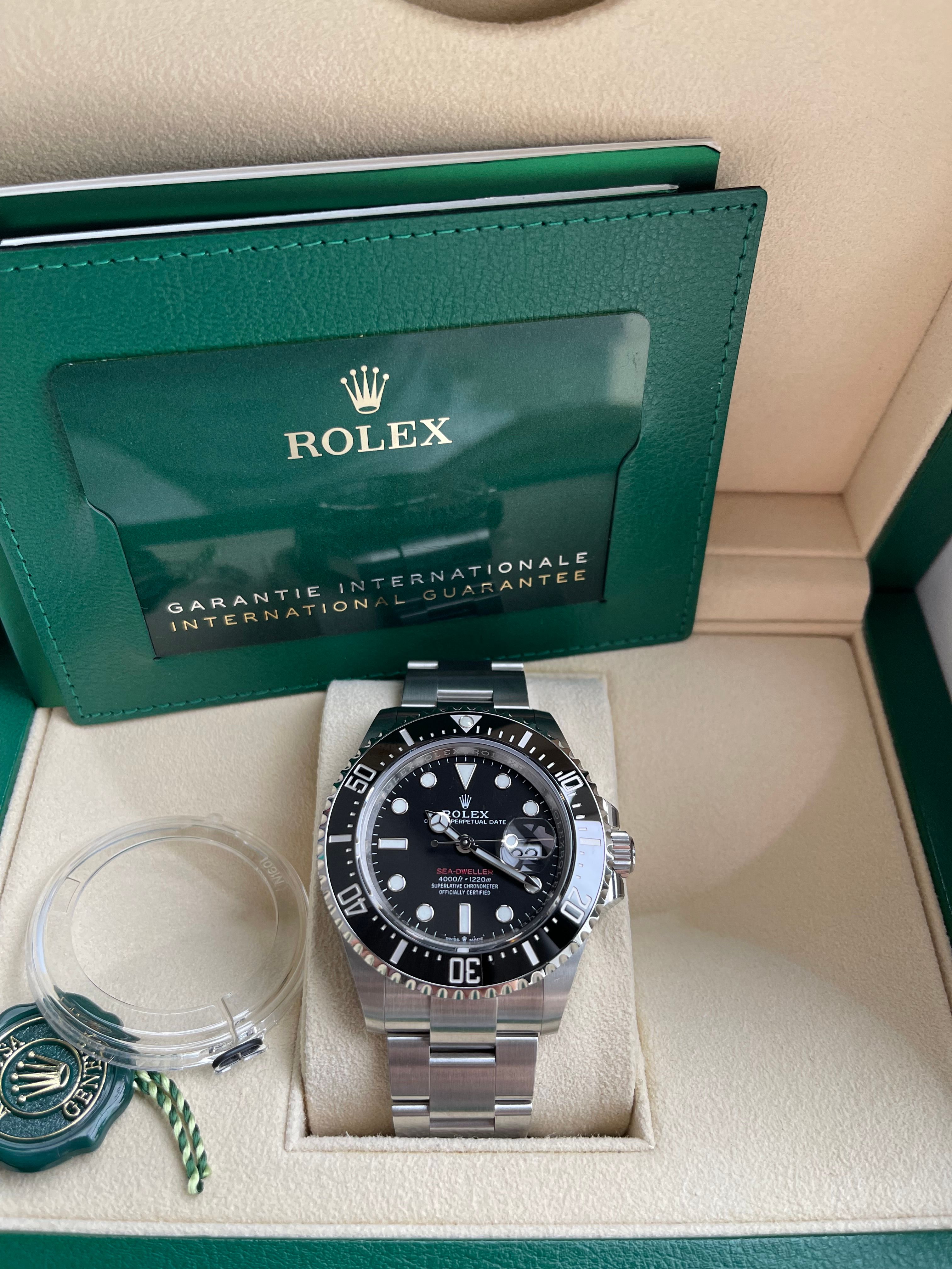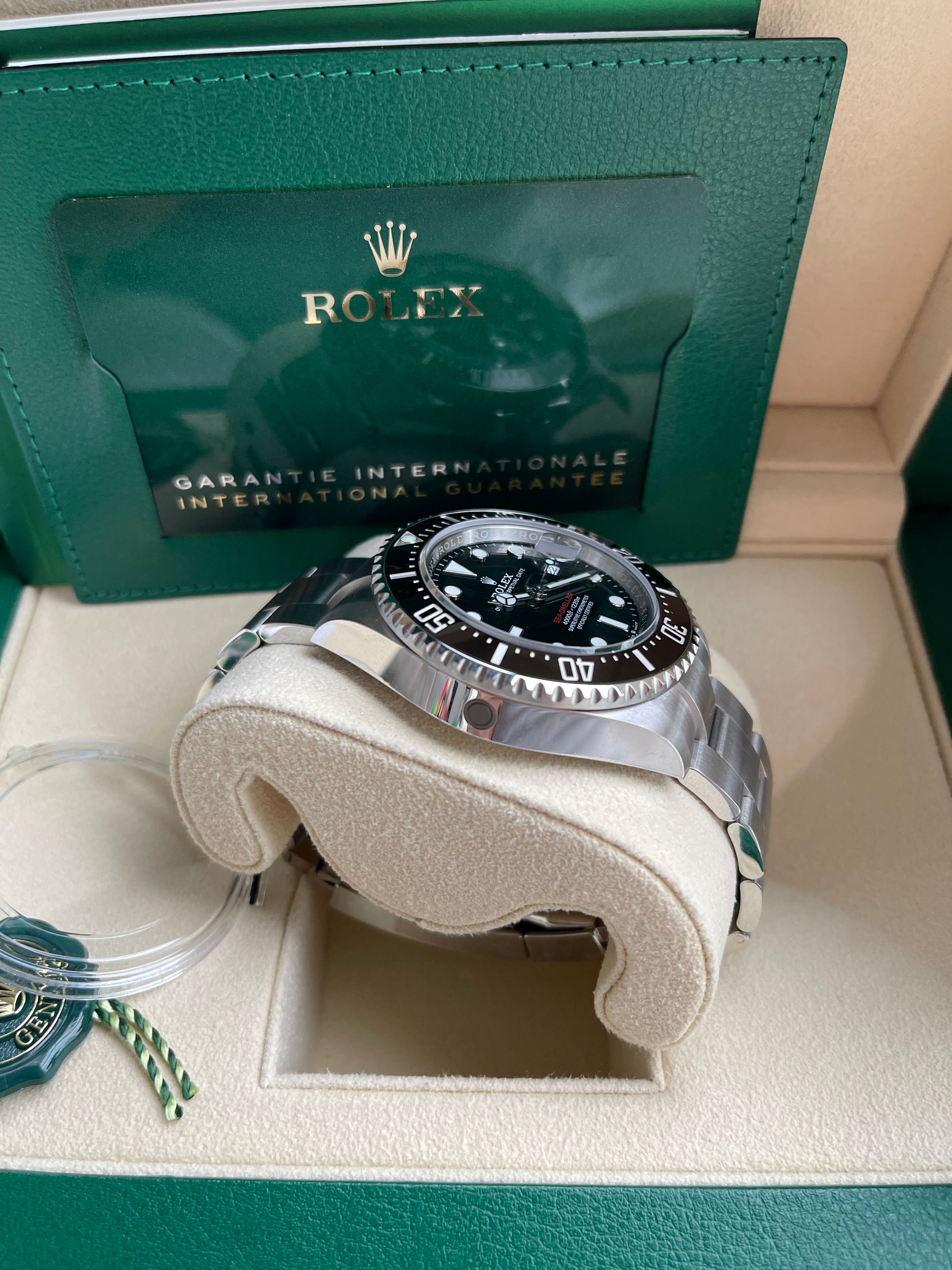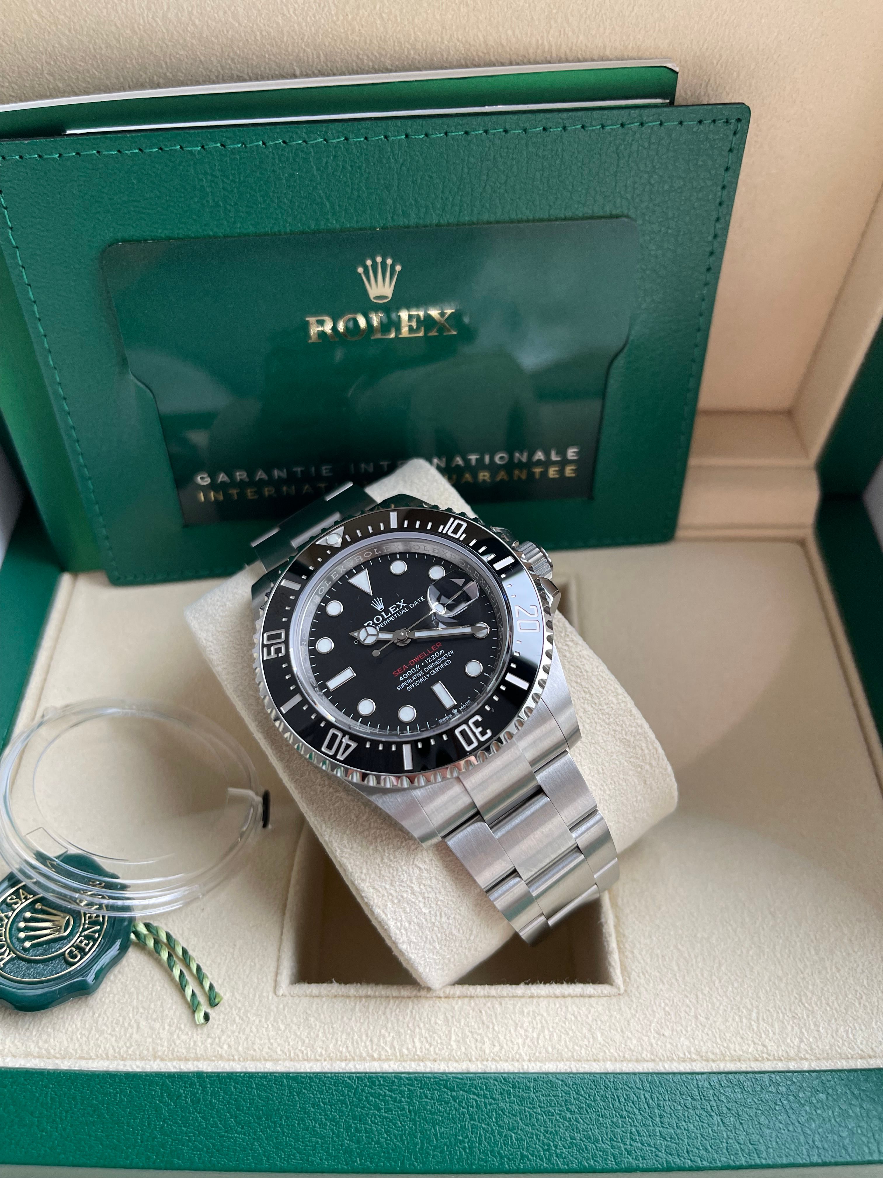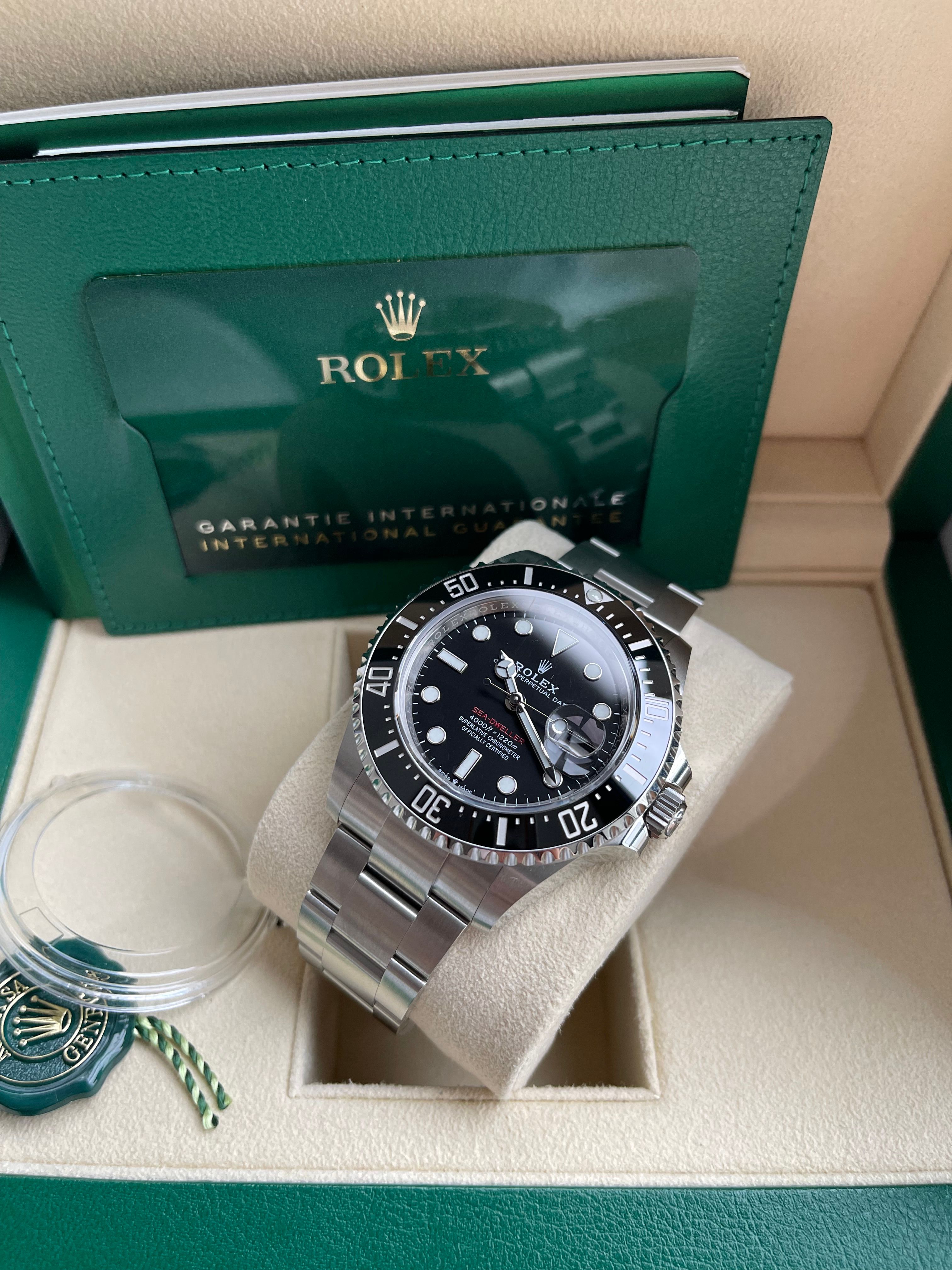 Rolex Sea-Dweller Red Line NEW 2022 Partial Stickers in a new condition. Beautiful black dial in a steel case with ceramic bezel.