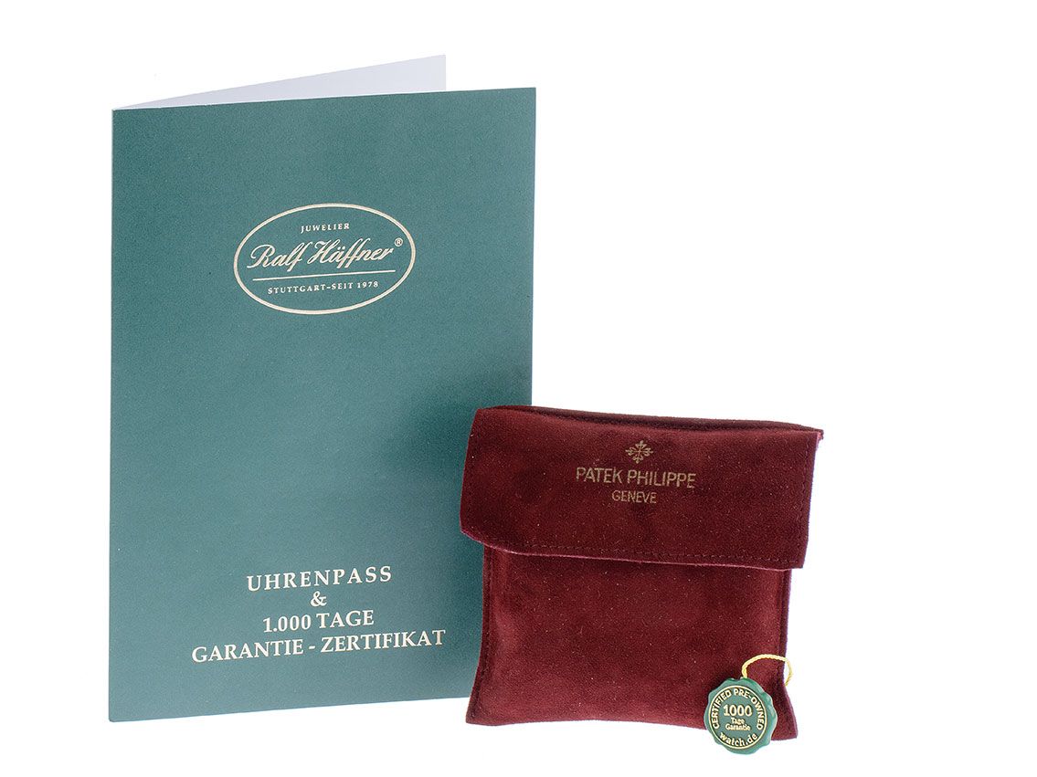 Inklusive certified pre owned Siegel / Uhrenpass mit einem Farbbild, der genauen Beschreibung sowie dem Wiederbeschaffungswert der Uhr über 10500,-€ und 1000 Tage Garantie ab Kaufdatum.