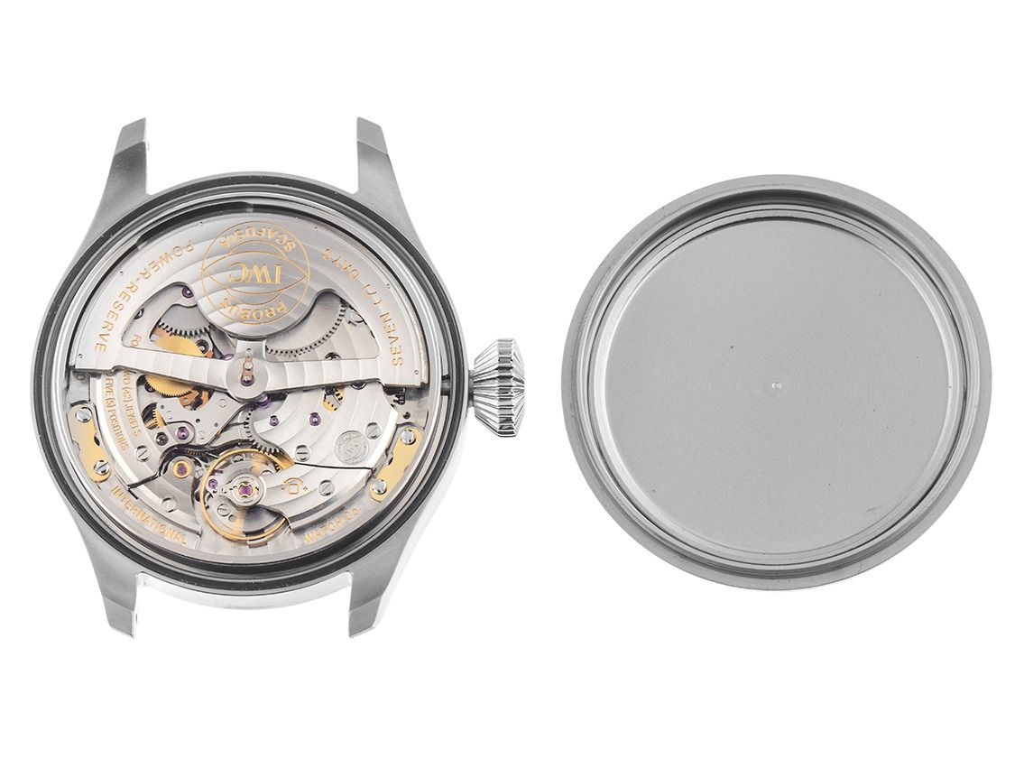 Gehäuse Edelstahl satiniert, Gehäusedurchmesser ohne Krone 46mm, Gehäusehöhe 15,9mm. Lünette Edelstahl glatt und poliert. IWC Armband Textil / Leder schwarz / rot, IWC Faltschließe Edelstahl mit Hersteller-Logo. Zifferblatt silberfarben mit aufgesetzten Edelstahl Indexen, schwarzen arabischen Ziffern und Edelstahl Zeigern. Uhrwerk Automatik, IWC Manufakturkaliber C.51011 mit 44 Edelsteinen. Anzeige von Stunde und Minute über Zeiger aus der Mitte, kleine Sekunde mit Sekundenstopp zur sekundengenauen Einstellung der Uhrzeit bei 9 Uhr, Datumsanzeige mit Schnellverstellung bei 6 Uhr, Gangreserveanzeige bei 3 Uhr. Saphirglas kratzfest. Krone verschraubbar mit Hersteller-Logo. Boden Edelstahl verschraubt und graviert. Gewicht der Uhr inkl.. Armband 138g. Referenznummer: IW500432, Gehäusenummer: 3840XXX, ID: P0419157000125H-15500, Artikelnummer: 10000078321. Offizielle Uhr der deutschen Fußball Nationalmannschaft. Mit Gangkontrolle und kompletter äußerlicher Aufarbeitung von Januar 2025, inkl. 1000 Tage Garantie. Original IWC Box und Garantie Papiere von Juni 2012 sowie Watchregister Auszug von Januar 2025, The Watch Register Zertifikat / ohne Eintrag (Internationale Datenbank für verlorene oder gestohlene Uhren), Full Set. Limitiert auf 250 Exemplare. Kapitalanlage mit Wertsteigerungspotential, Sammlerstück. Ungetragen. Lieferung sofort.