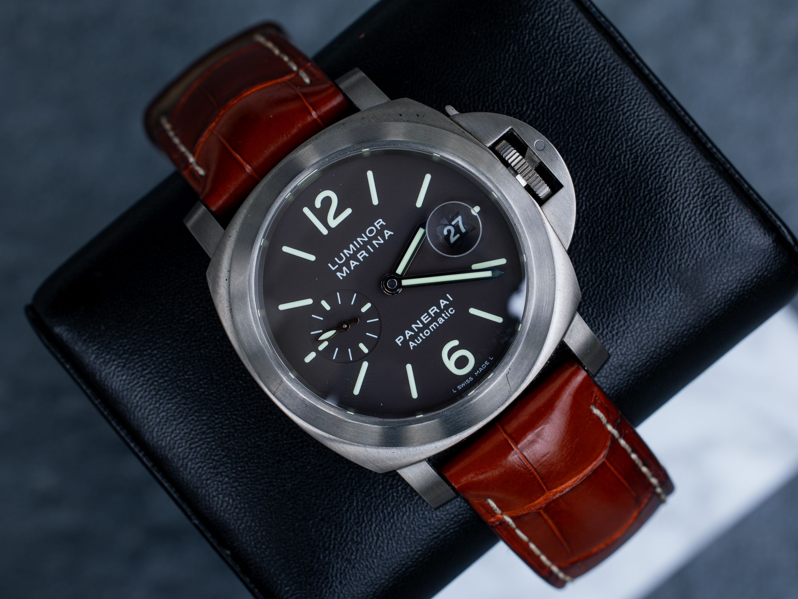 Panerai Luminor in a 44mm titanium case.The model is hard to find. I offer it with a set of boxes, a chronometer certificate and warranty stickers - no card.