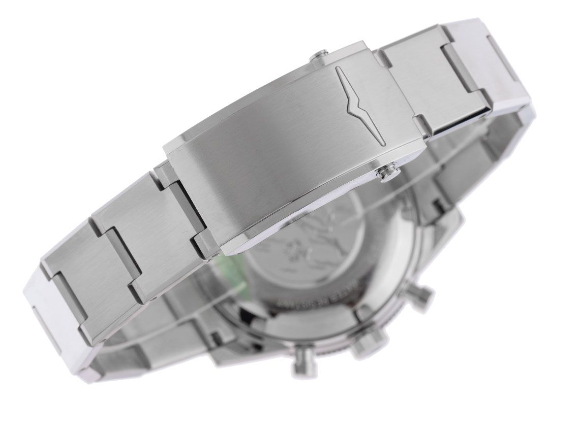 Gehäuse aus poliertem und satiniertem Edelstahl, Gehäusedurchmesser ohne Krone 39,7 mm, Gehäusehöhe 13,0 mm. Lünette aus Edelstahl mit schwarzem Inlay und 60-Minuten-Skala, beidseitig drehbar. Armband aus poliertem und satiniertem Edelstahl, Sicherheitsfaltschließe aus Edelstahl mit Hersteller-Logo. Zifferblatt schwarz matt mit aufgesetzten Edelstahl-Leuchtindexen und Edelstahl-Leuchtzeigern. Uhrwerk Automatik, Chronograph, Kaliber Vulcain C088 mit 26 Edelsteinen, Gangreserve ca. 42 Stunden. Anzeige von Stunde und Minute über Zeiger aus der Mitte, kleine Sekunde mit Sekundenstopp zur sekundengenauen Einstellung der Uhrzeit. Saphirglas kratzfest und gewölbt. Krone verschraubbar mit Hersteller-Logo. Boden aus Edelstahl verschraubt und graviert. Gewicht der Uhr inklusive Armband 164 g, Länge des Armbandes inklusive Gehäuse 205 mm. Referenznummer: 590176A07.BHM286, ID: ST593435460925H-3006, Artikelnummer: 10000082480. Original Vulcain Box und Garantie-Papiere von 2025, Full Set. Neu. Lieferzeit sofort.
