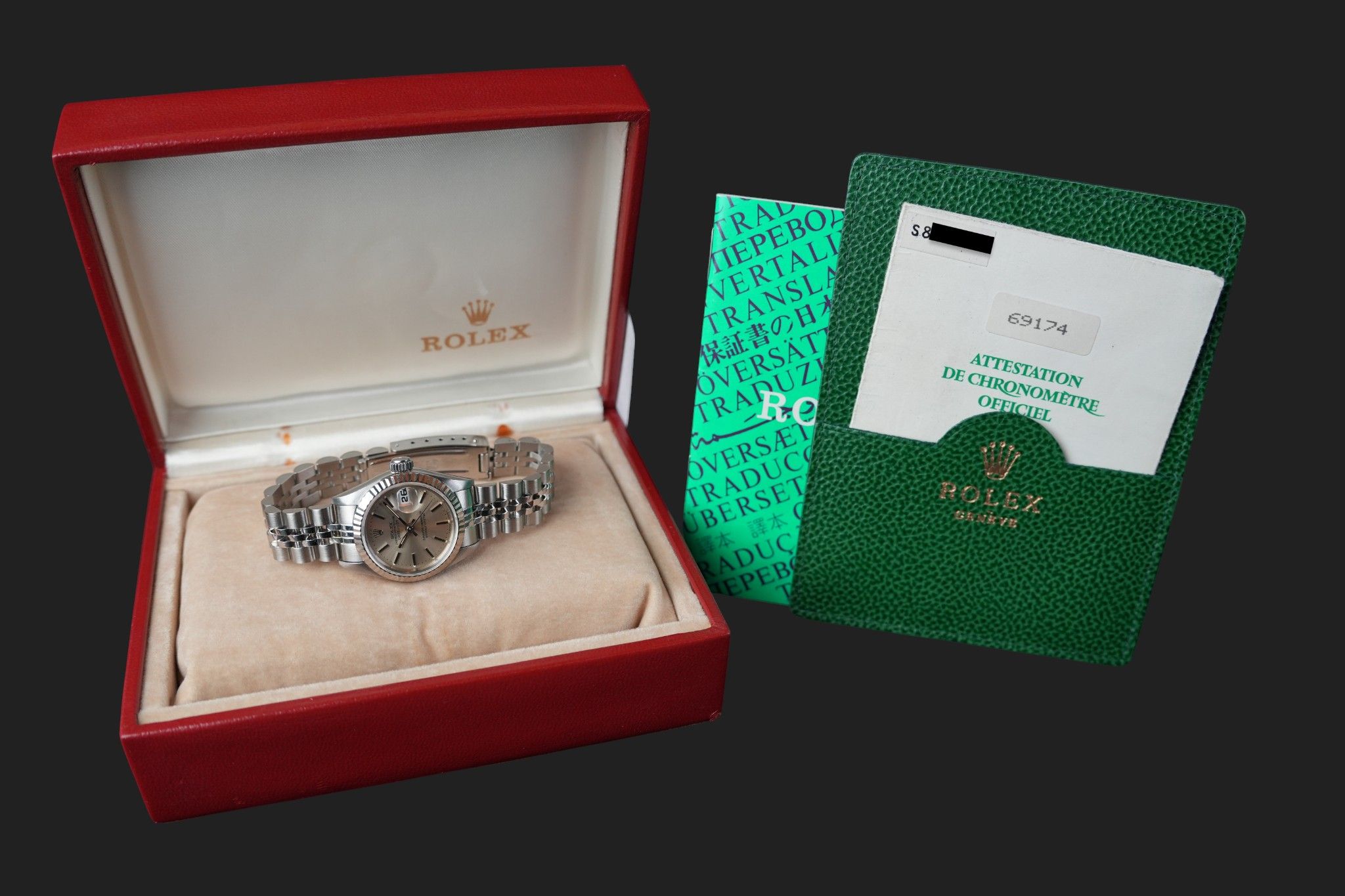 Dial colour is silver.Originally sold by Rolex LC400 (Hong Kong).