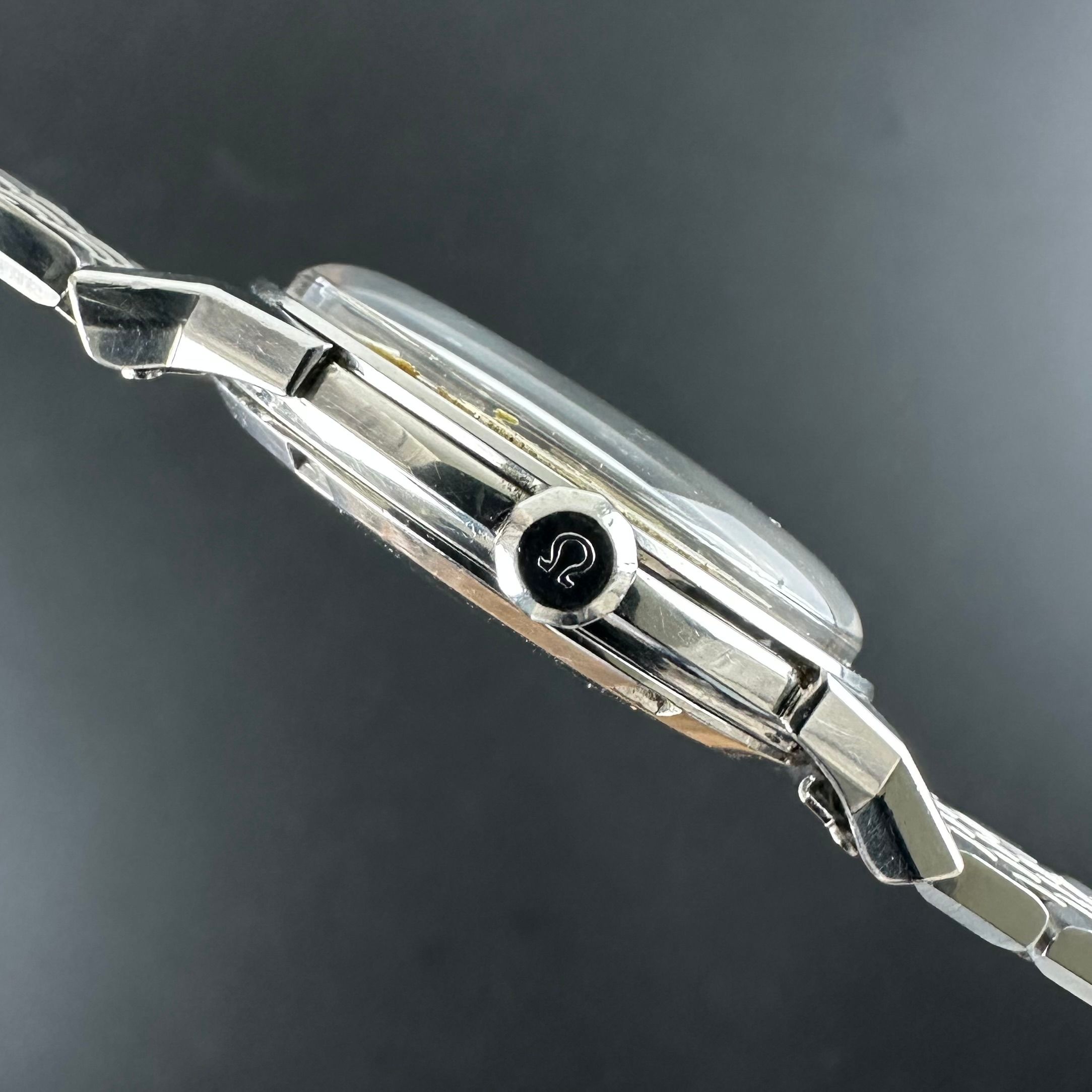 This vintage 1962 Omega Constellation chronometer features a classic pie-pan dial and elegant dog-leg lugs, traits highly prized by collectors. A distinctive touch: it is mounted on its original Omega Beads of Rice bracelet, making the full package rarer and more desirable.The dial displays a developing patina, adding character without compromising legibility. Inside, the watch houses a caliber 561 automatic chronometer-certified movement, serviced in October 2025, and currently running and functioning excellently. The overall condition is good, suitable for a collector’s showcase or daily wear.