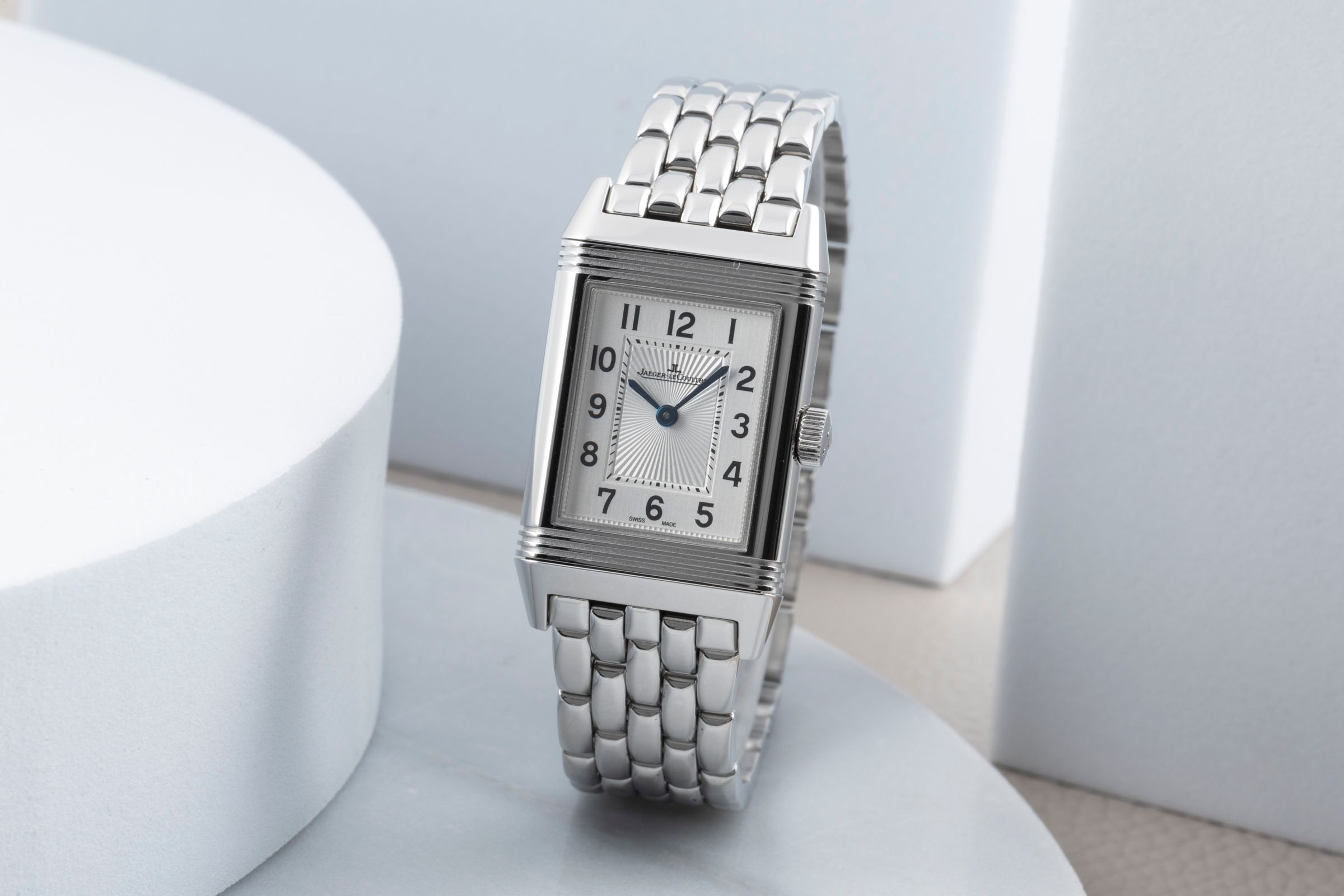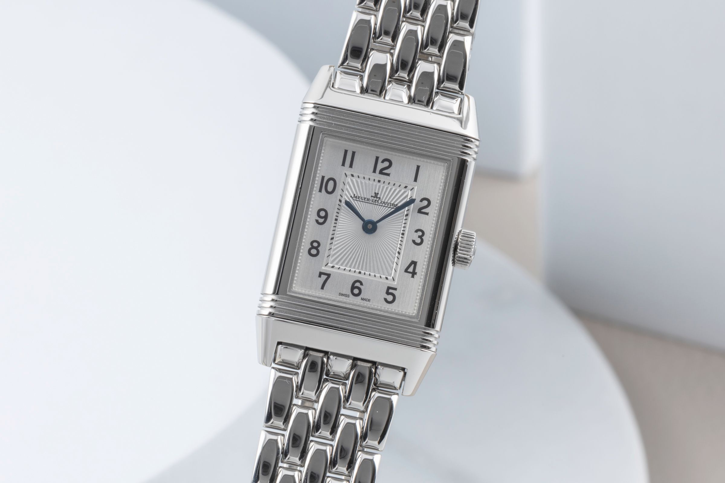 Alternative title: Jaeger-LeCoultre Q2608140 Reverso Classic Small Stainless Steel / Silver / Bracelet; Jaeger LeCoultre Reverso Stahl Handaufzug Damenuhr Ref Q2608140 B&P NP: 9450,- € [2505367]