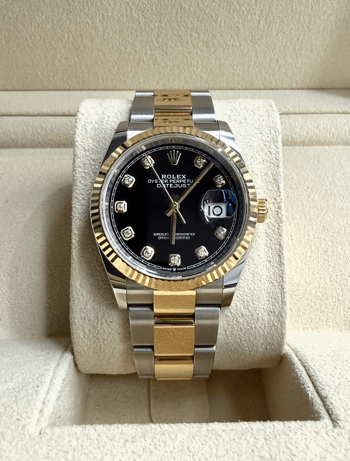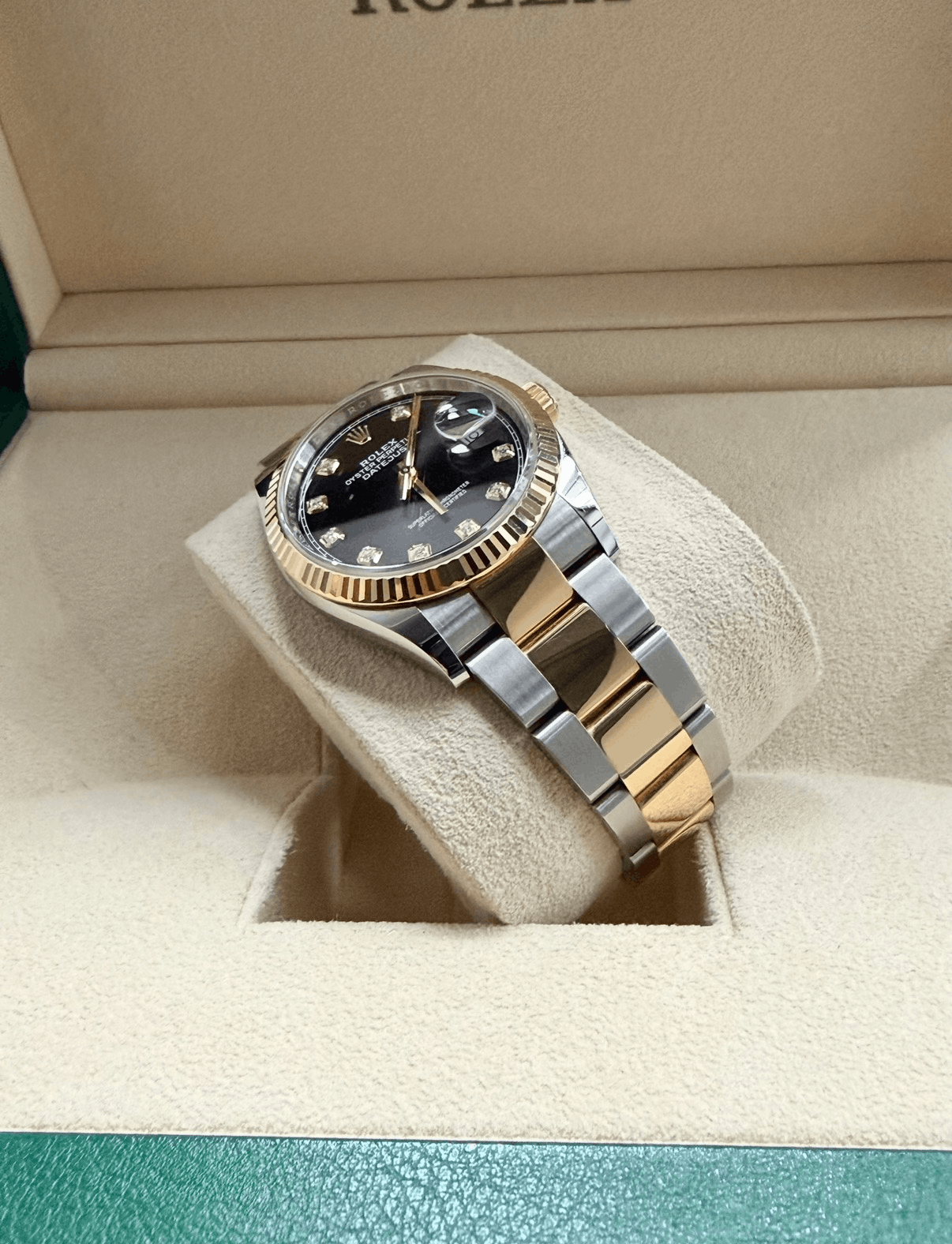 Rolex Datejust 36 2022 Schwarze Diamant-Wijzerplaat Wie neu Lc AT