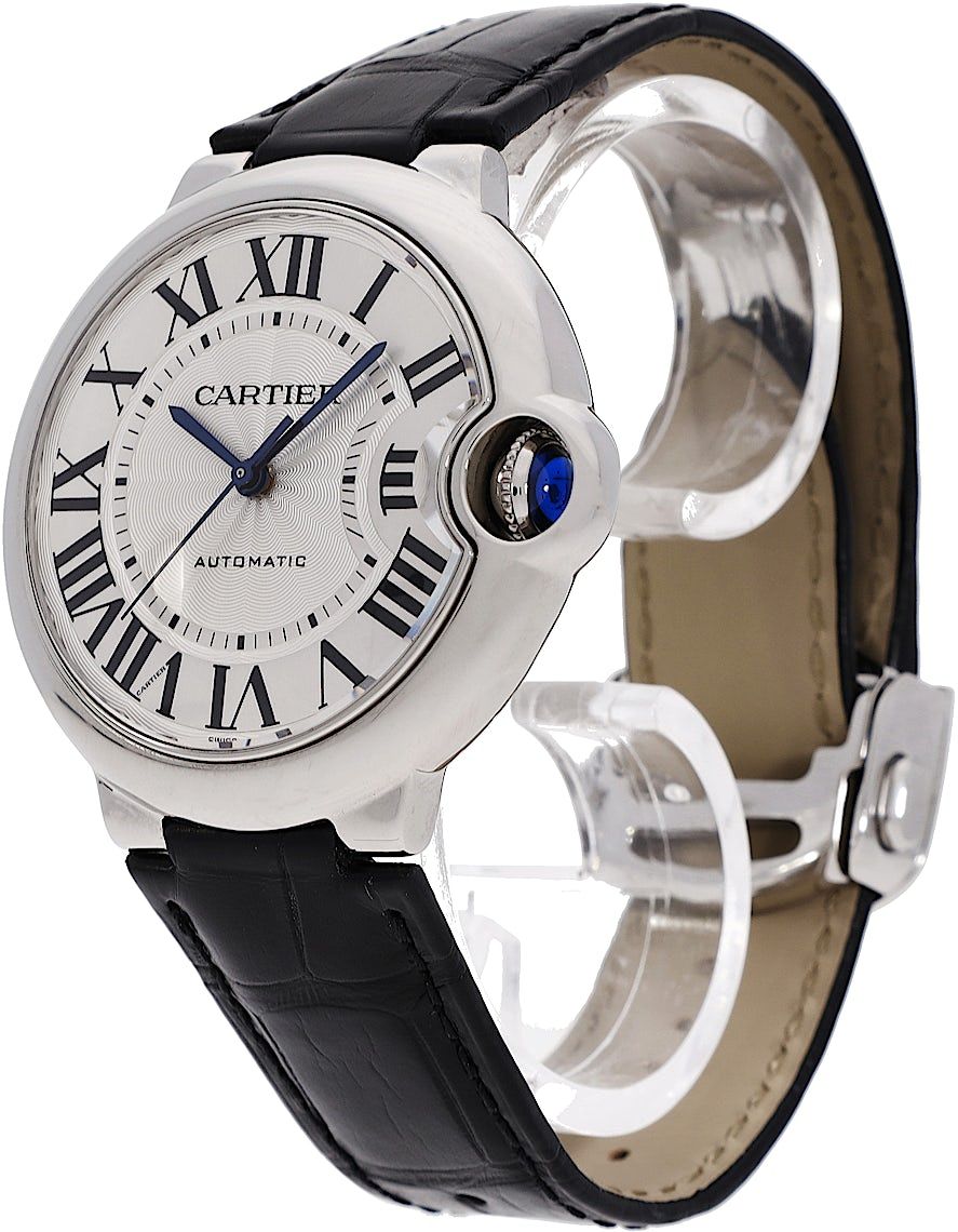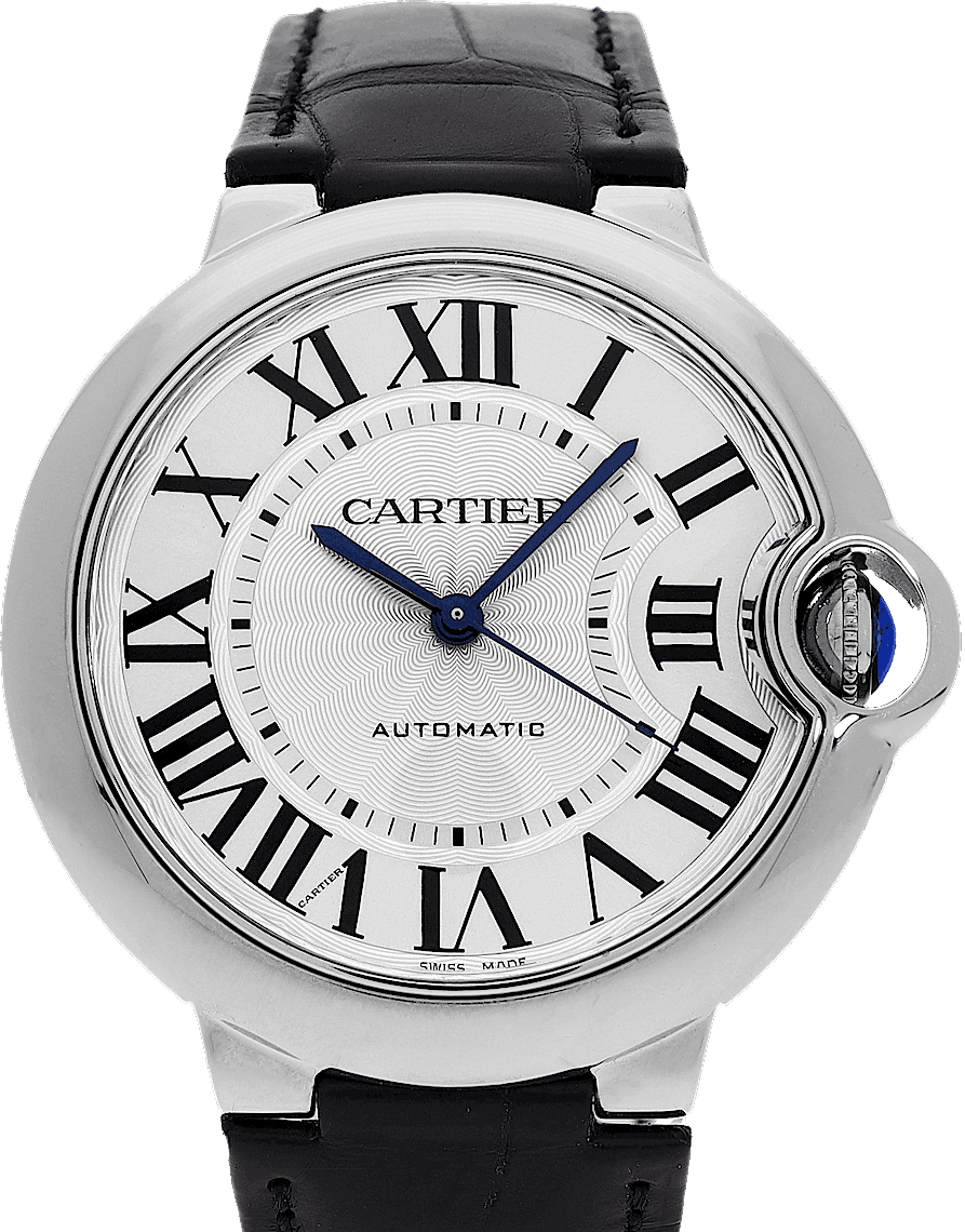 Cartier Ballon Bleu, Reference: WSBB0028, Gender: Unisex, Size: 36mm, Dial color: Silver, Strap material: Alligator Leather, Movement: Automatic, Condition: Previously worn, minor to no signs of usage. The movement is flawless and the case has been cleaned. watch tested ensure full functionality. An inspection by our certified watchmakers guarantees its authenticity., Documents: Chronext Certificate