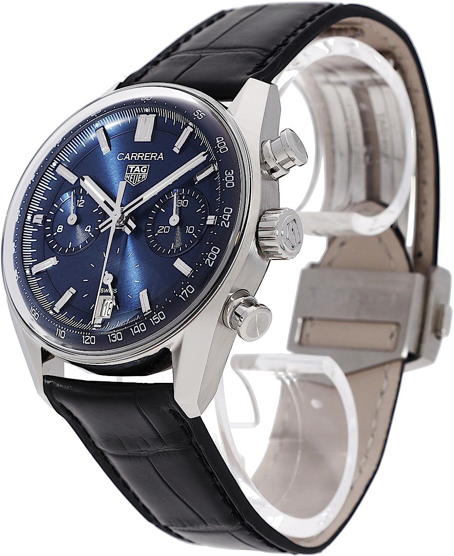 TAG Heuer Carrera Chronograph, Reference: CBS2212.FC6535, Gender: Unisex, Size: 39mm, Dial color: Blue, Strap material: Calf Leather, Movement: Automatic, Year: 2023, Condition: Previously worn, minor to no signs of usage. The movement is flawless and the case has been cleaned. watch tested ensure full functionality. An inspection by our certified watchmakers guarantees its authenticity., Documents: Original papers, CHRONEXT Certificate