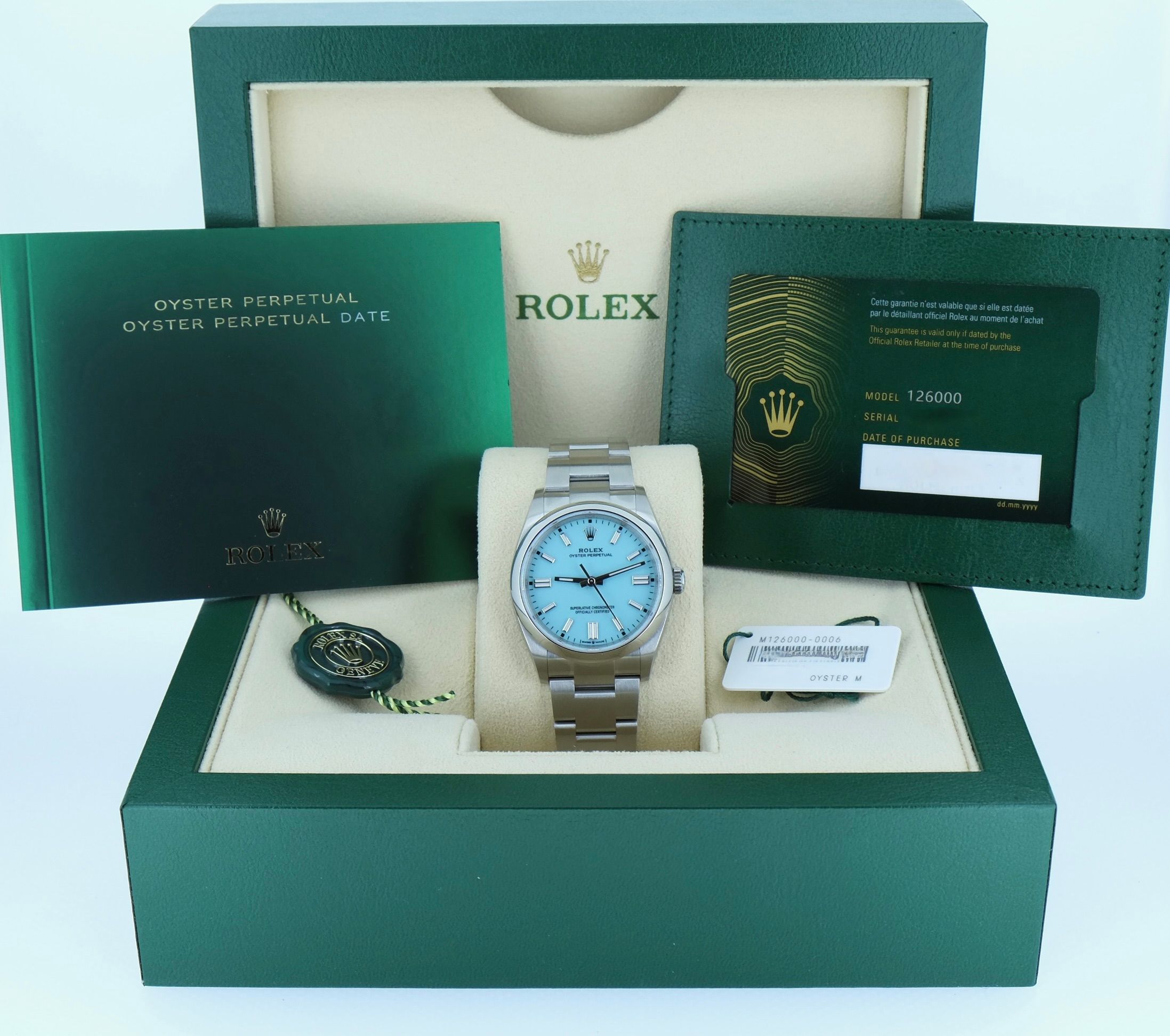 Rolex Oyster Perpetual 36 Rolex Oyster Perpetual 36mm Türkis ”Tiffany” Index 09/2025 LC100 – 126000