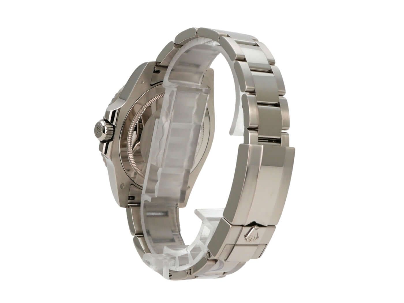 Gehäuse aus 18 kt Weißgold, poliert und satiniert, Gehäusedurchmesser 40 mm, Gehäusehöhe 12 mm, Lünette aus 18 kt Weißgold, geriffelt mit blauer/roter Keramikeinlage und 24-Stunden-Skala, beidseitig drehbar, Oyster-Armband aus 18 kt Weißgold, poliert und satiniert mit Sicherheits-Faltschließe, blaue Zifferblatt mit aufgesetzten lumineszierenden Indizes und lumineszierenden Punkten, lumineszierende Zeiger, automatisches Uhrwerk, Rolex Manufakturkaliber 3186 mit 31 Rubinen, Frequenz 28.800 A/h, Datumsanzeige, GMT / zweite Zeitzone, Chronometer, Saphirglas, verschraubte Krone mit Flankenschutz, verschraubter Gehäuseboden aus 18 kt Weißgold, wasserdicht bis 10 bar.