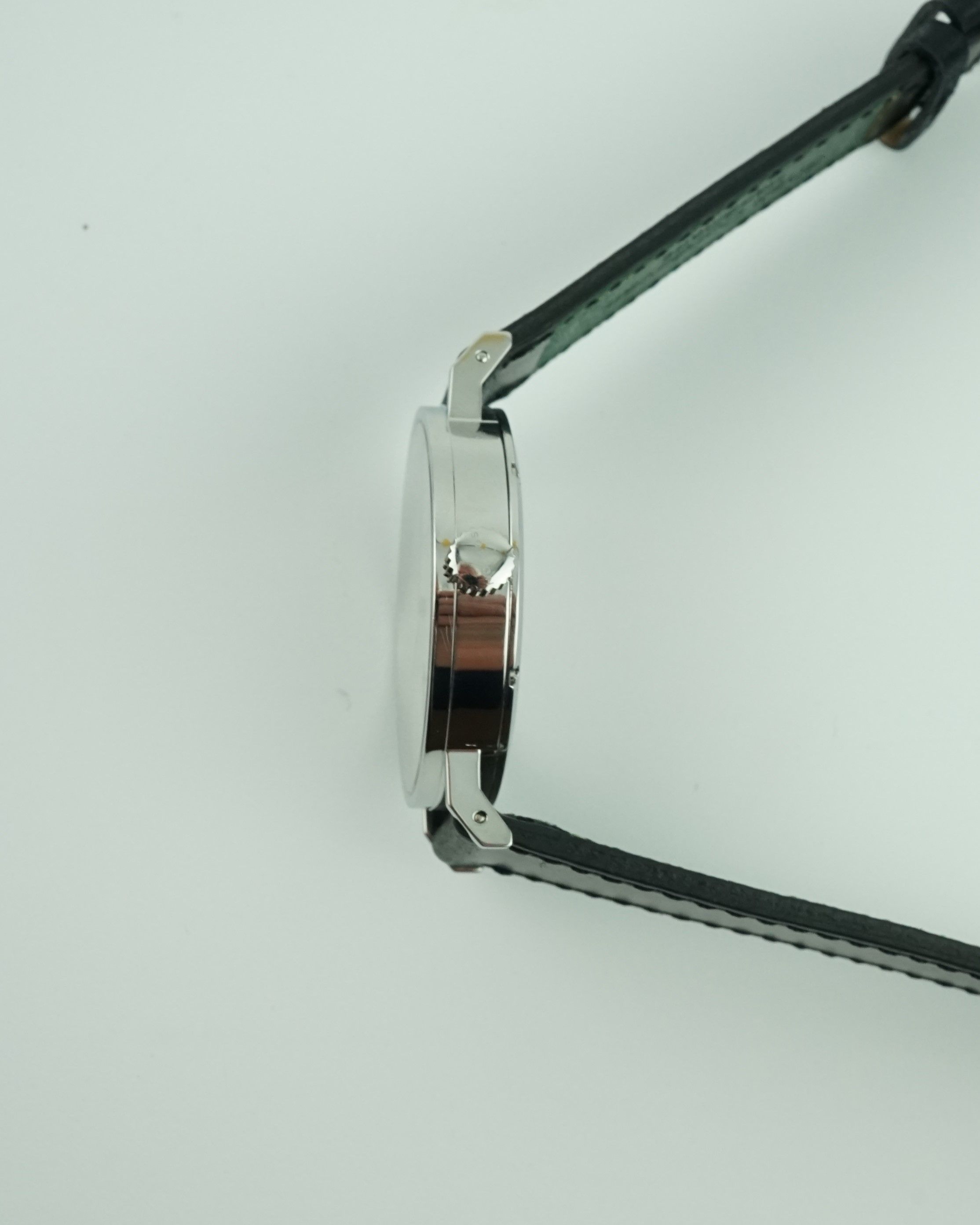 Zifferblatt: Weiß (galvanisiert, versilbert) mit schwarzer Minuterie und blauen Zeigern