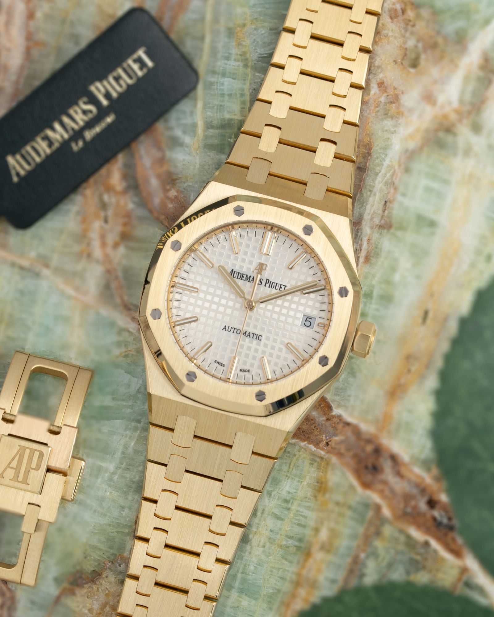 For both safety and comfort, the twin-folding clasp features dual push-buttons and a square AP-signed link, a testament to the brand’s meticulous craftsmanship.