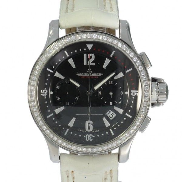 Jaeger-LeCoultre Master Compressor Chronograph Diamonds 148.8.31. Nice ladies Jaeger-LeCoultre Master Compressor. This chronograph is original fabric mounted with diamonds at the bezel Box & papers complete
