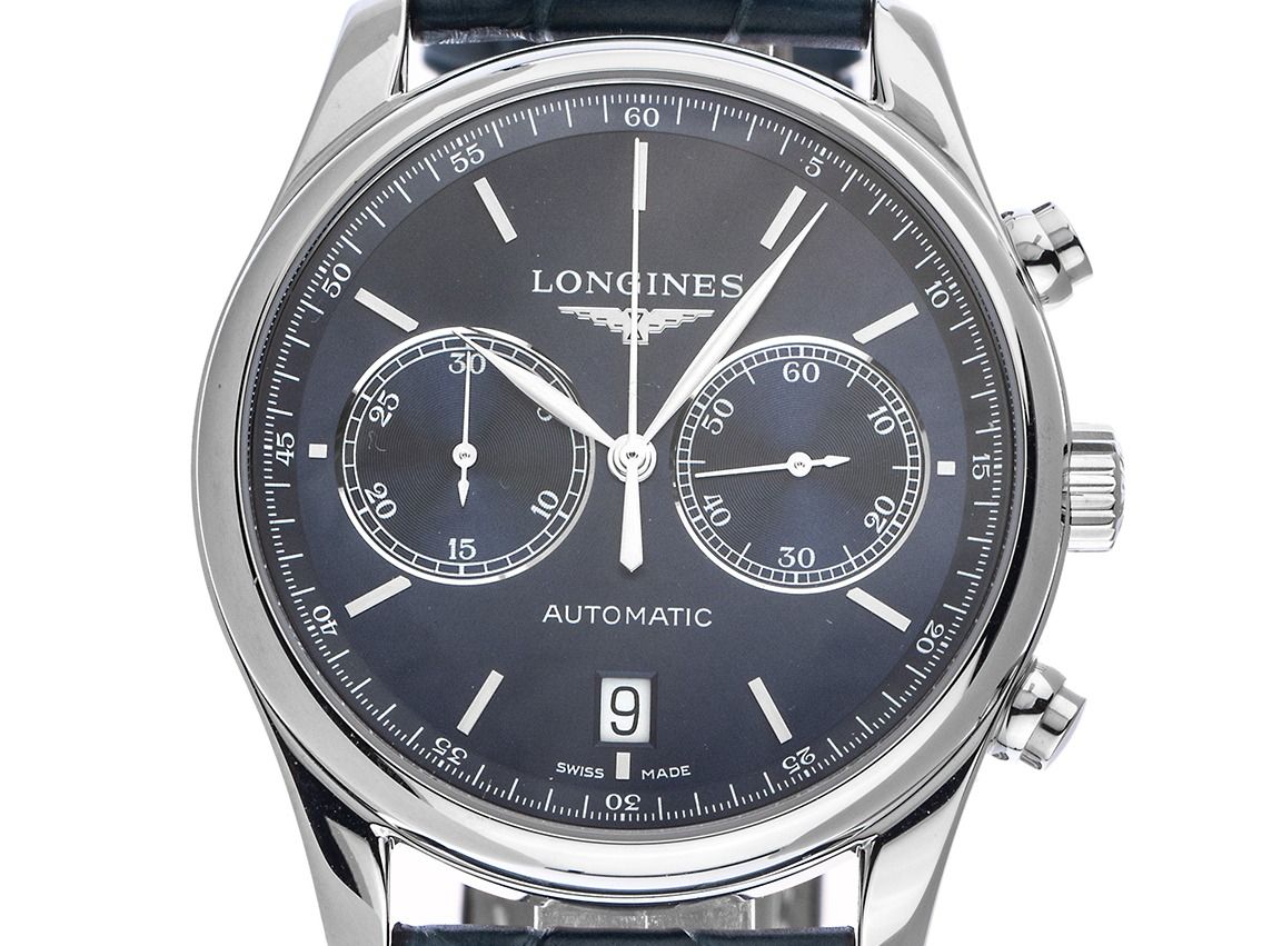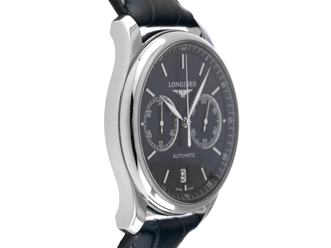 Longines Master Collection Stahl Automatik Chronograph Armband Krokoleder Faltschließe