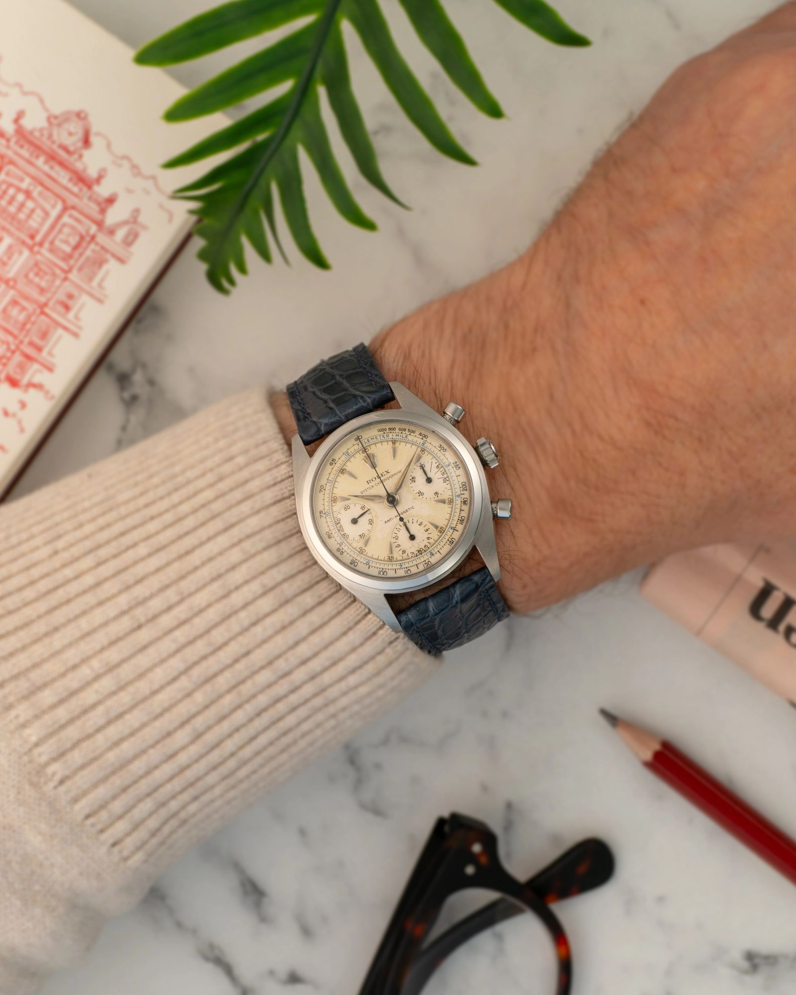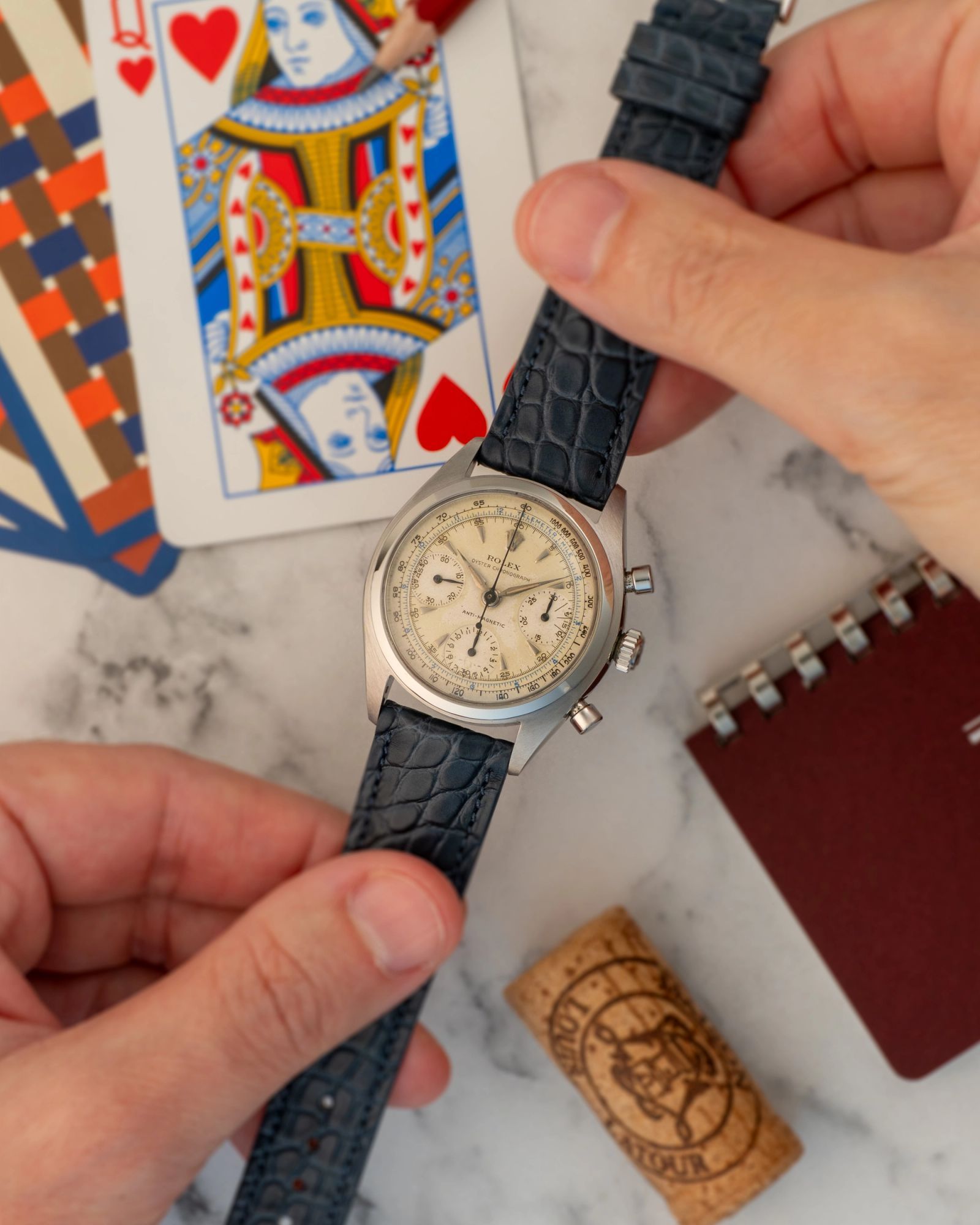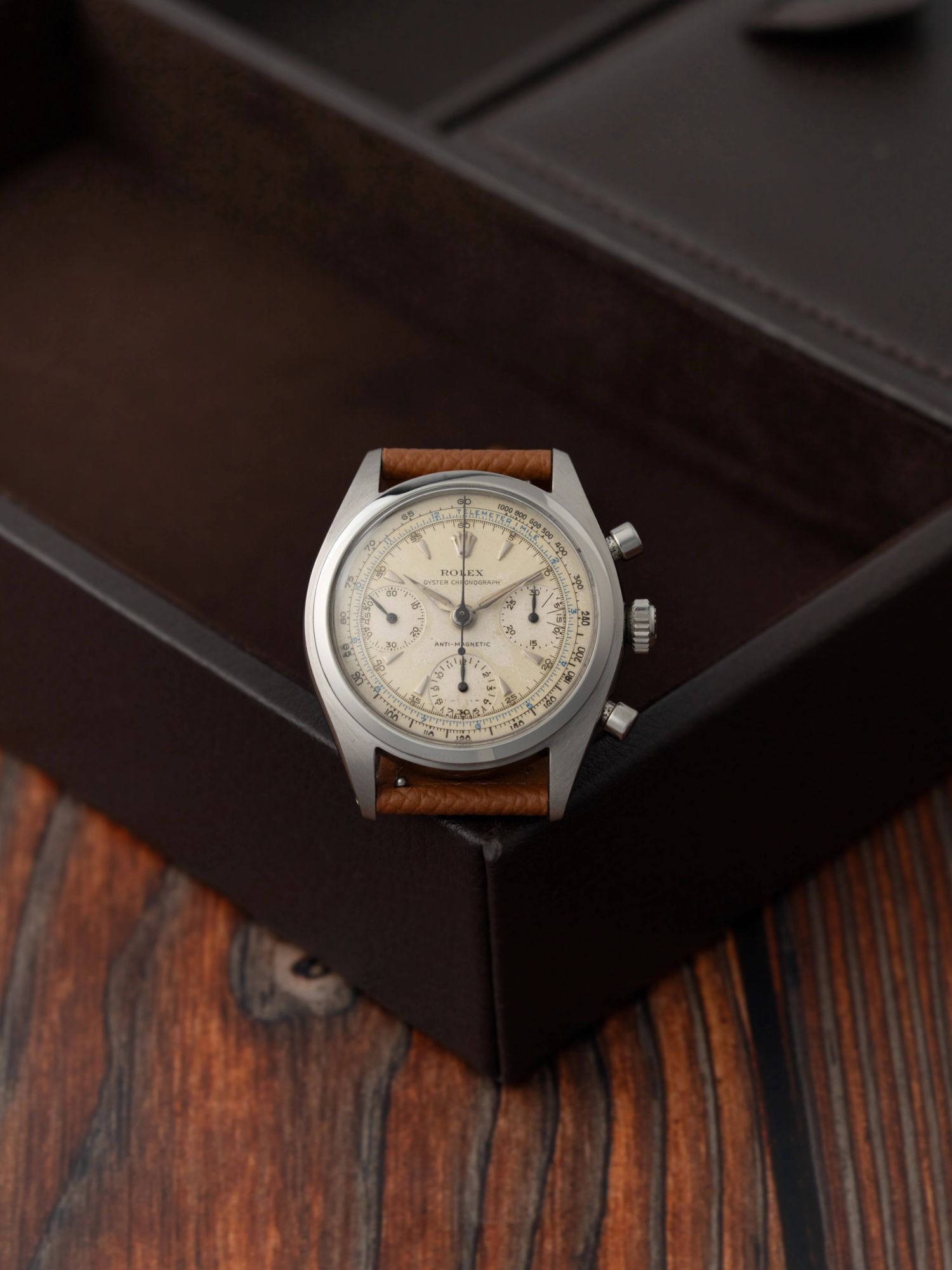 A rare and sophisticated collector’s chronograph, representing the purest expression of Rolex design before the Daytona era.