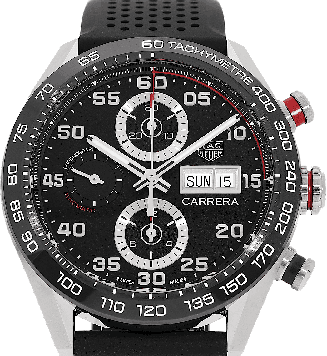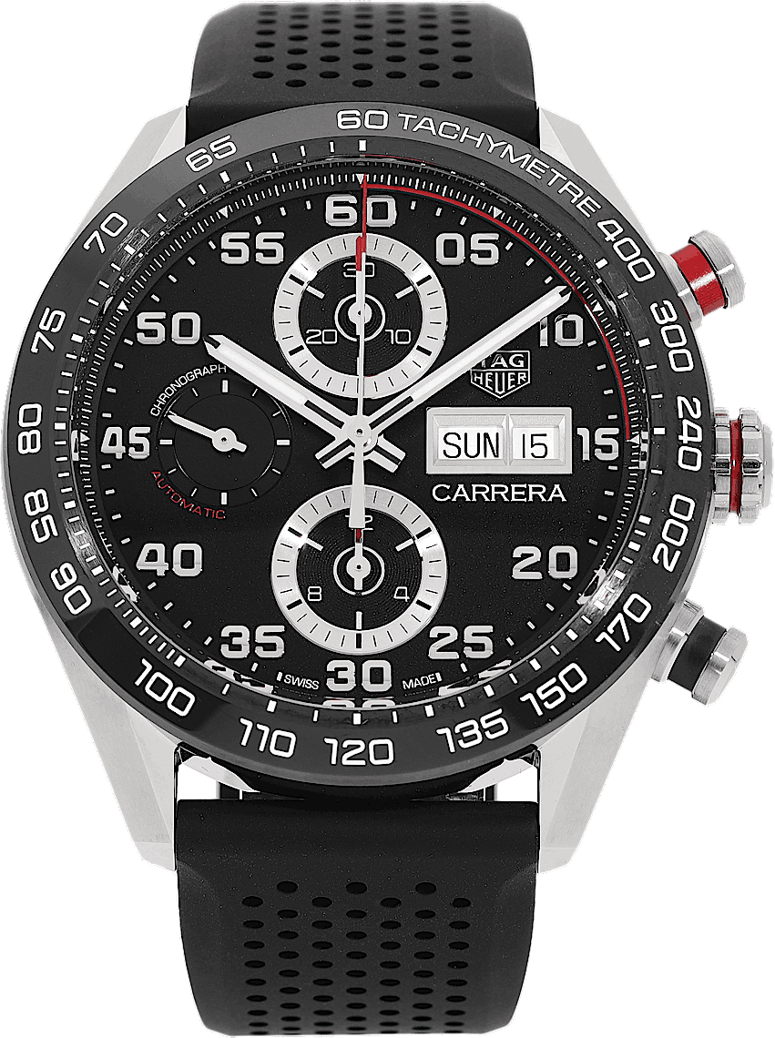 TAG Heuer Carrera, Reference: CBN2A1AA.FT6228, Gender: Male, Size: 44mm, Dial color: Black, Strap material: Rubber, Movement: Automatic, Year: 2025, Condition: New and unworn. An inspection by our certified watchmakers guarantees authenticity., Documents: Original papers, CHRONEXT Certificate