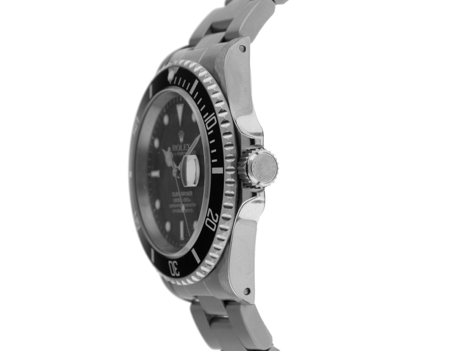 Gehäuse aus poliertem und satiniertem Edelstahl, Gehäusedurchmesser ohne Krone 40mm, Gehäusehöhe 12,8mm. Lünette aus Edelstahl mit geriffeltem Rand und schwarzem Inlay sowie 60-Minuten-Skala, einseitig drehbar. Armband Oyster aus satiniertem Edelstahl, Sicherheitsfaltschließe aus Edelstahl mit Hersteller-Logo. Zifferblatt Swiss-Only Dial schwarz mit aufgesetzten Indexen aus Weißgold und Weißgoldenen Zeigern. Uhrwerk Automatik, Rolex Manufakturkaliber 3135 mit 31 Edelsteinen. Anzeige von Stunde, Minute und Sekunde über zentrale Zeiger mit Sekundenstopp zur sekundengenauen Einstellung der Uhrzeit, Datumsanzeige mit Schnellverstellung unter Glaslupe bei 3 Uhr. Saphirglas kratzfest. Verschraubbare Krone mit Flankenschutz und Hersteller-Logo. Boden aus Edelstahl, verschraubt. Gewicht der Uhr inklusive Armband 125g, Länge des Armbandes inklusive Gehäuse 180mm. Referenznummer: 16610, Gehäusenummer: U392XXX, ID: KA1691169481125H-12500, Artikelnummer: 10000082952. Mit Gangkontrolle und kompletter äußerlicher Aufarbeitung von November 2025. Original Rolex Box mit Umkarton und Beschreibung, Ledermäppchen sowie Watchregister Auszug von November 2025, The Watch Register Zertifikat / ohne Eintrag (Internationale Datenbank für verlorene oder gestohlene Uhren). Superschnäppchen, Kapitalanlage mit Wertsteigerungspotential, sehr seltenes Sammlerstück. Wie Neu. Lieferzeit sofort.