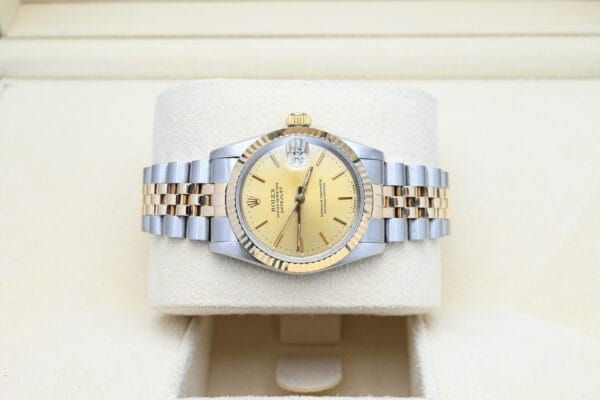 Rolex Datejust 68273 aus 1995 mit der champagnerfarbenen Zifferblatt in ausgezeichnetem Zustand, kommt komplett mit dem vollen Set. Alle unsere Uhren wurden gründlich von unserem eigenen Uhrmacher überprüft und bei Bedarf gewartet.