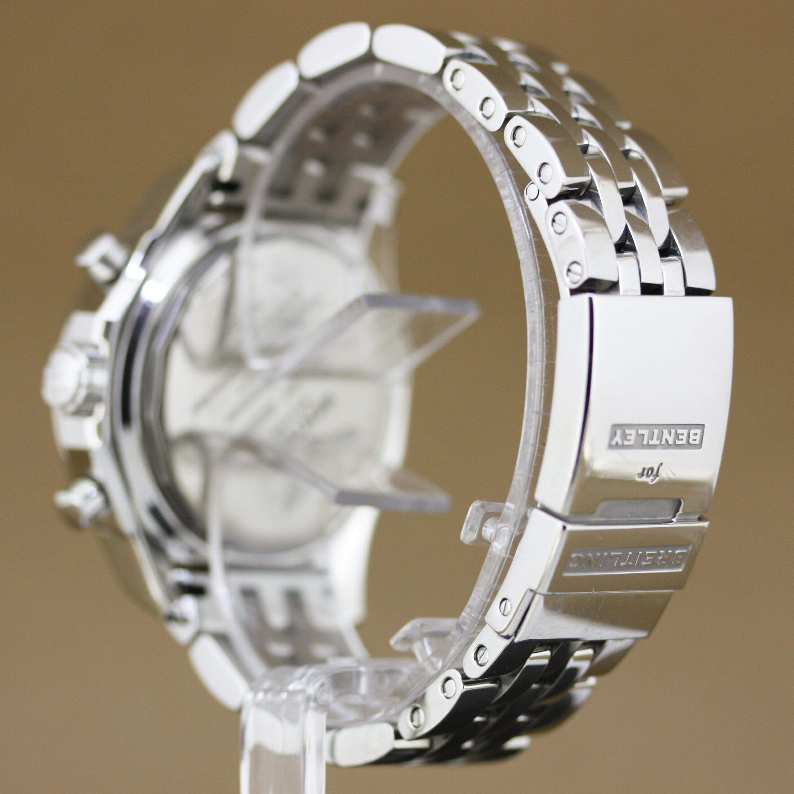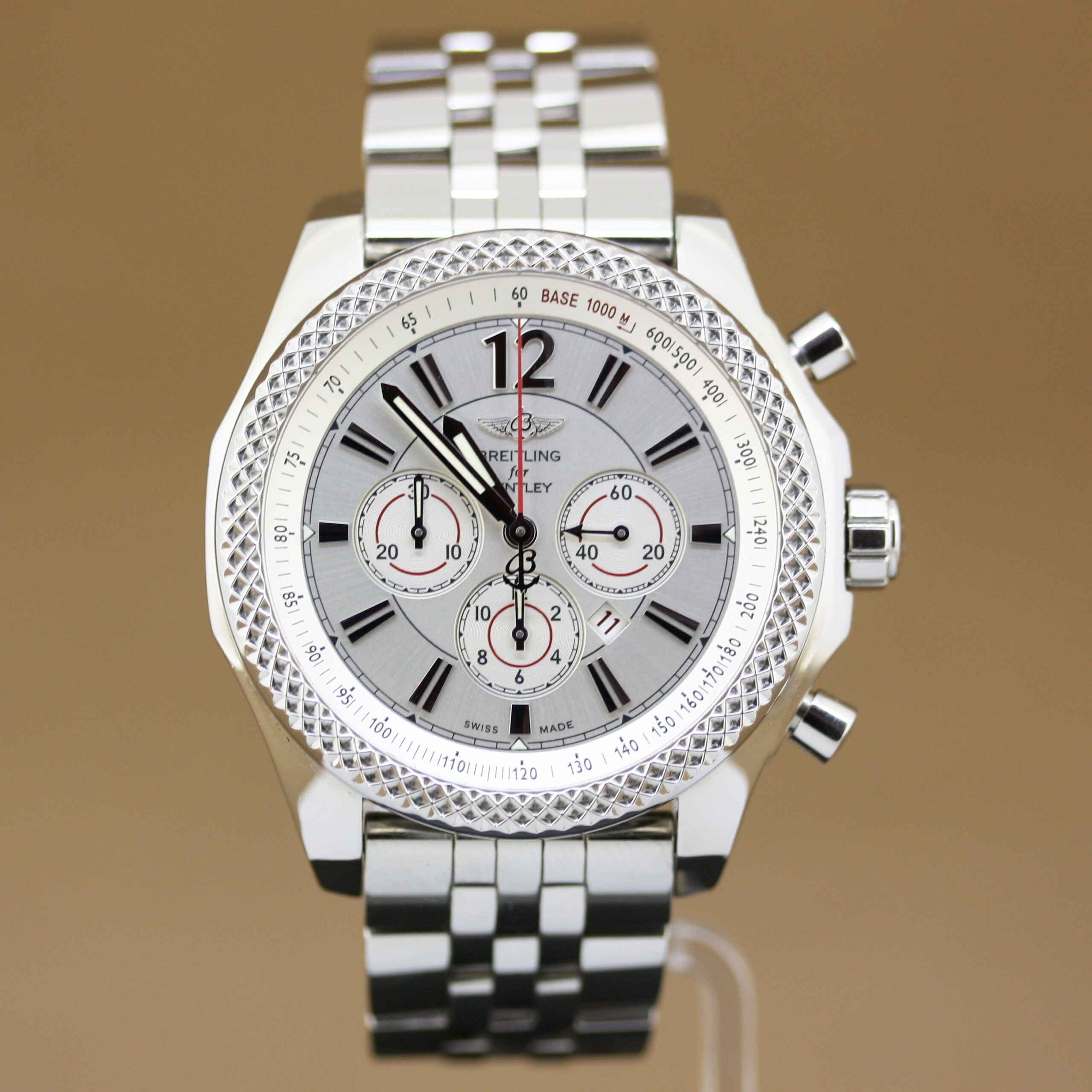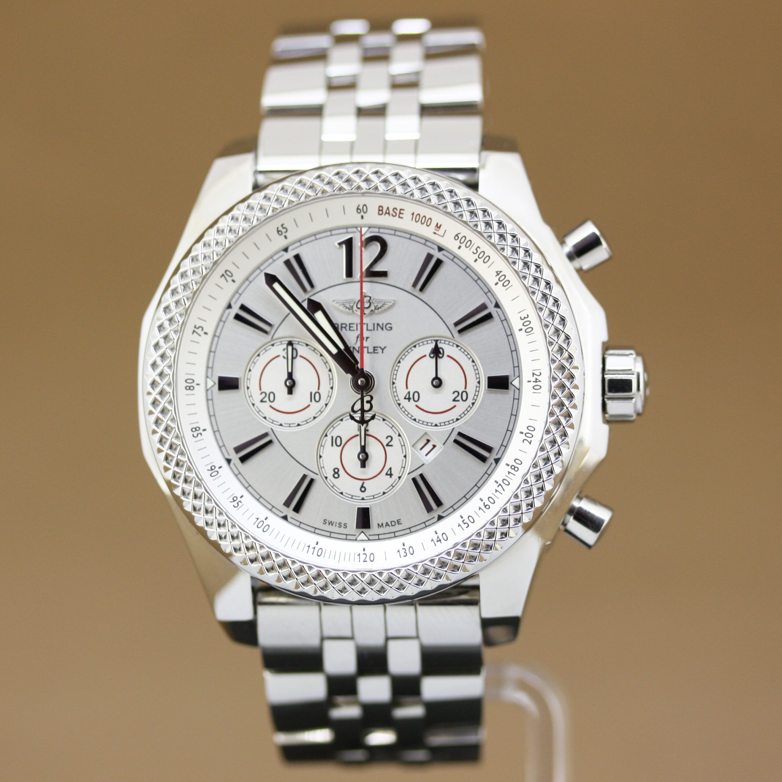 Breitling Bentley Barnato 42 A41390 – Schwarze Zifferblatt – Vollset – Kürzlich gewartet Zum Verkauf: eine Breitling Bentley Barnato 42, Referenz A41390, in ausgezeichnetem Zustand. Dieses elegante und sportliche Modell verfügt über ein Gehäuse aus Edelstahl und ein silbernes Zifferblatt, das einen kraftvollen und stilvollen Look kreiert. Die Uhr ist mit einem automatischen Uhrwerk mit Datumsfunktion ausgestattet und wurde kürzlich vollständig professionell gewartet – sie läuft perfekt und ist technisch in ausgezeichnetem Zustand. Das Edelstahlarmband mit einer Faltschließe ergänzt das Design nahtlos und bietet optimalen Tragekomfort. Die Uhr kommt als Vollset mit der Originalverpackung und den Papieren. ✔ Automatisches Uhrwerk mit Datumsfunktion ✔ Edelstahlgehäuse ✔ Silbernes Zifferblatt ✔ Edelstahlarmband mit Faltschließe ✔ Vollset: Originalverpackung und Papiere enthalten ✔ Kürzlich vollständig gewartet Eine stilvolle und zuverlässige Uhr aus der Zusammenarbeit zwischen Breitling und Bentley – ideal für den Alltag und Sammlungen. Ernsthaft interessiert? Kontaktiere uns gerne.