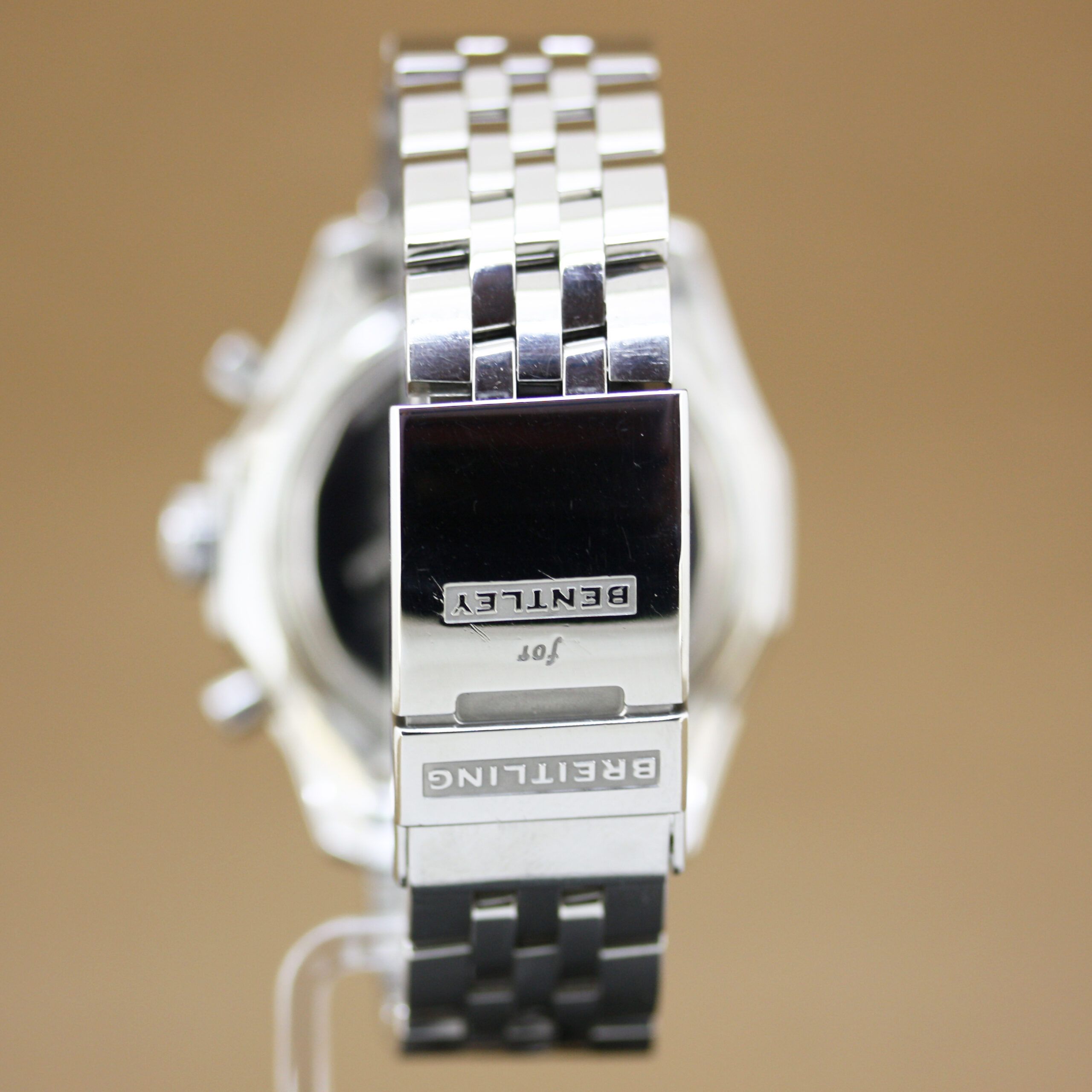 Breitling Bentley Barnato 42 A41390 – Black Dial – Full Set – Recently Serviced For sale: a Breitling Bentley Barnato 42, reference A41390, in excellent condition. This elegant and sporty model features a stainless steel case and a silver dial, creating a powerful and stylish look. The watch is equipped with an automatic movement with a date function and has recently been fully professionally serviced – it runs perfectly and is technically in excellent condition. The steel bracelet with a folding clasp seamlessly complements the design and offers optimal wearing comfort. The watch comes as a full set with the original box and papers. ✔ Automatic movement with date function ✔ Stainless steel case ✔ Silver dial ✔ Steel bracelet with folding clasp ✔ Full set: original box and papers included ✔ Recently fully serviced A stylish and reliable watch from the collaboration between Breitling and Bentley – ideal for both everyday use and collections. Seriously interested? Feel free to contact us.