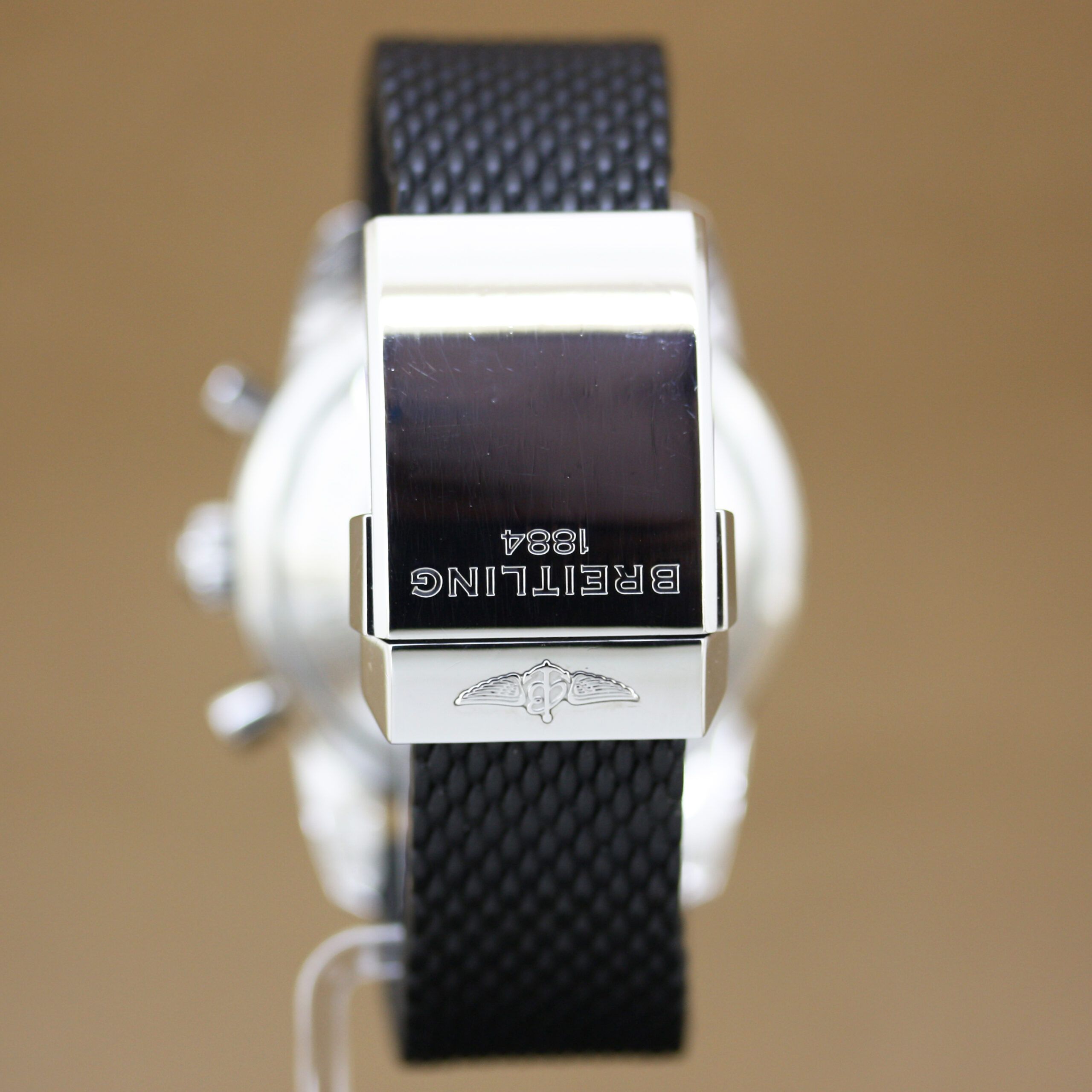 The Breitling rubber strap with folding clasp ensures comfort and durability, making it ideal for everyday wear or active use.
