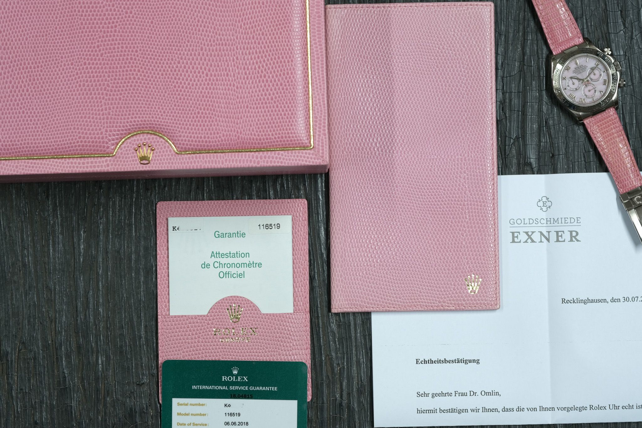 Zusatz: Rolex-Servicebeleg und Echtheitsbestätigung vom Juwelier Exner