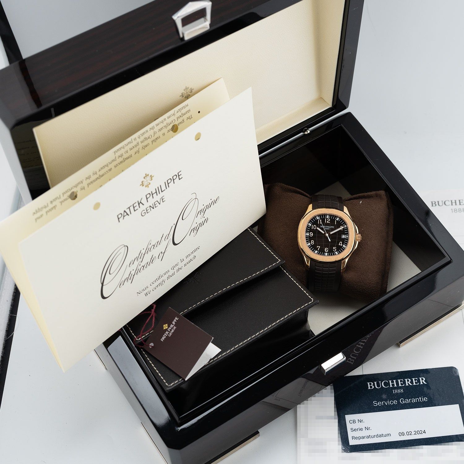 Durch den jüngst erfolgten Service im Jahr 2024 präsentiert sich das Modell in hervorragendem Zustand und zeigt die für Patek Philippe typische Präzision und Sorgfalt, die in jedem Detail spürbar ist.