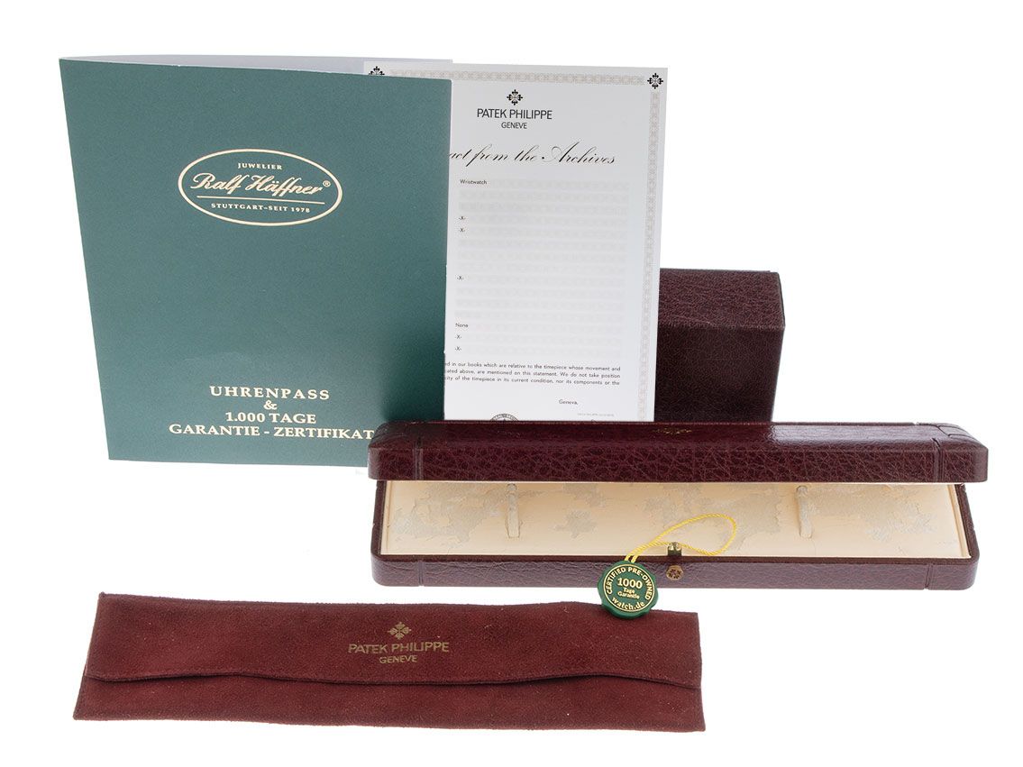 Inklusive certified pre owned Siegel / Uhrenpass mit einem Farbbild, der genauen Beschreibung sowie dem Wiederbeschaffungswert der Uhr über 21000,-€ und 1000 Tage Garantie ab Kaufdatum.
