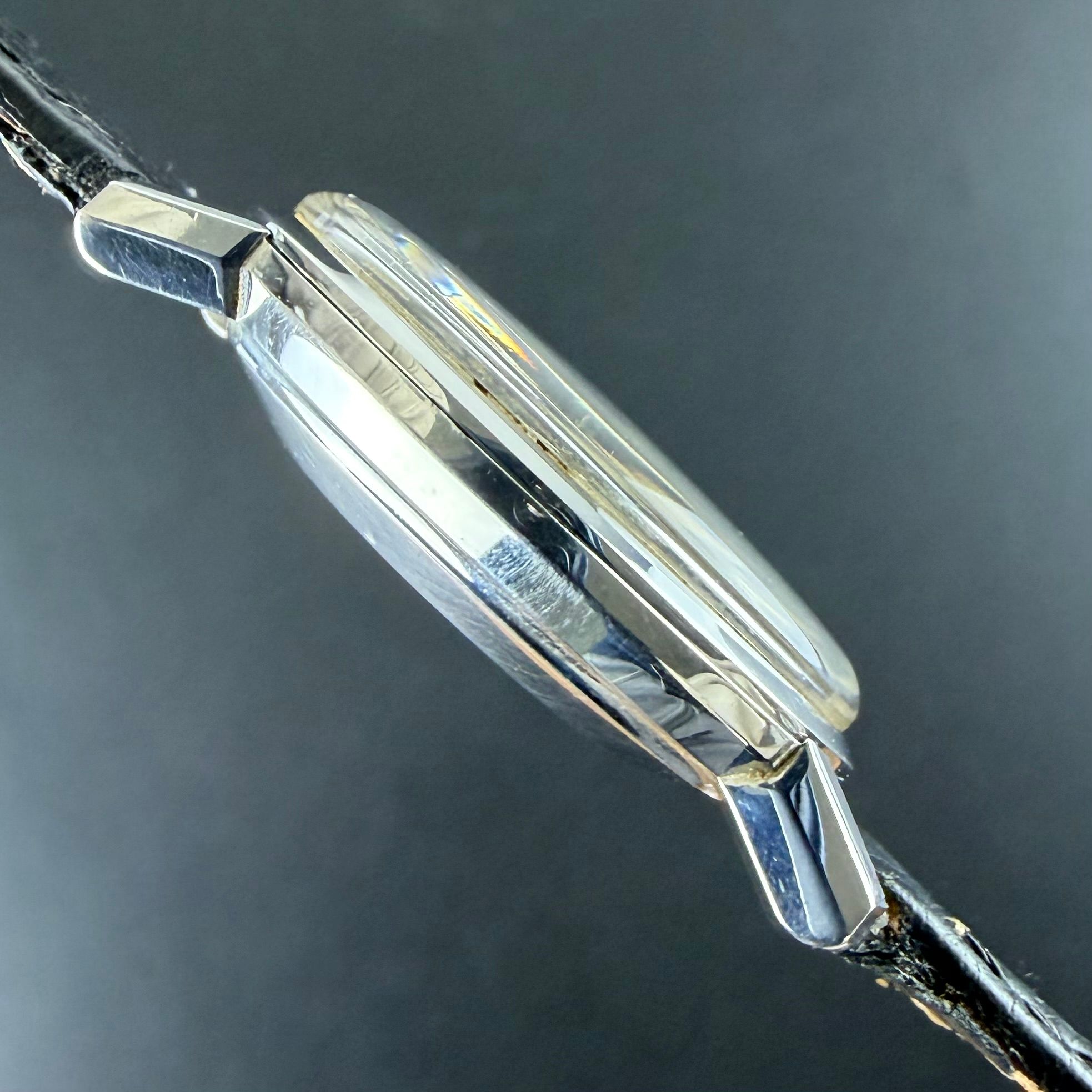 Diese Vintage Omega Seamaster De Ville, produziert 1966, verfügt über eine weiß vertikal gebürstete Zifferblatt. Die Stundenmarkierungen heben sich wunderschön vom Zifferblatt ab, das in einem 34,5 mm Gehäuse aus Edelstahl untergebracht ist. Im Inneren befindet sich das seltene Kaliber 550 Automatikwerk, das im November 2025 gewartet wurde und hervorragend funktioniert. Die Uhr ist mit einem schwarzen Kalbslederarmband ausgestattet. Insgesamt ist sie in einem großartigen Zustand und bleibt bis auf das Armband vollständig original.