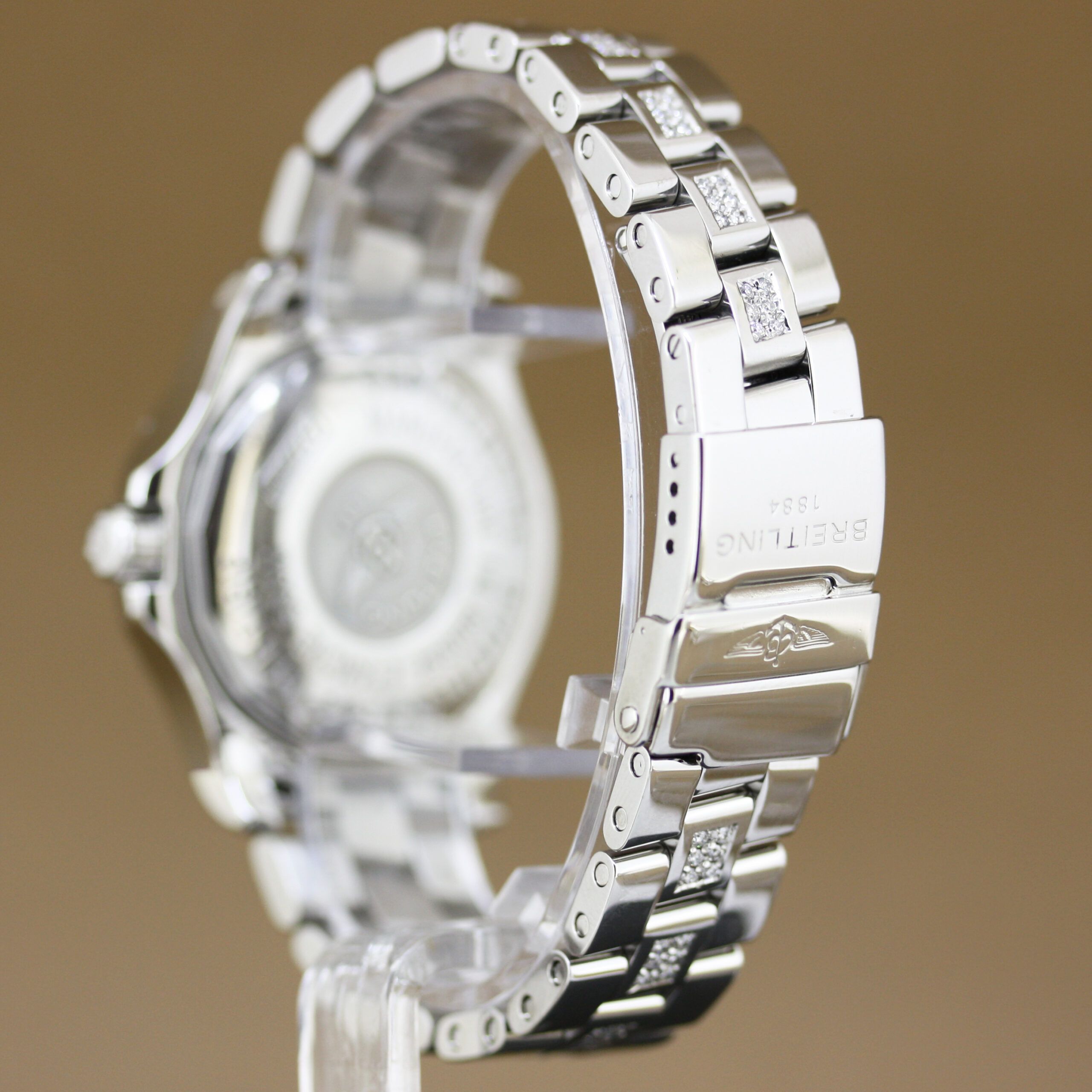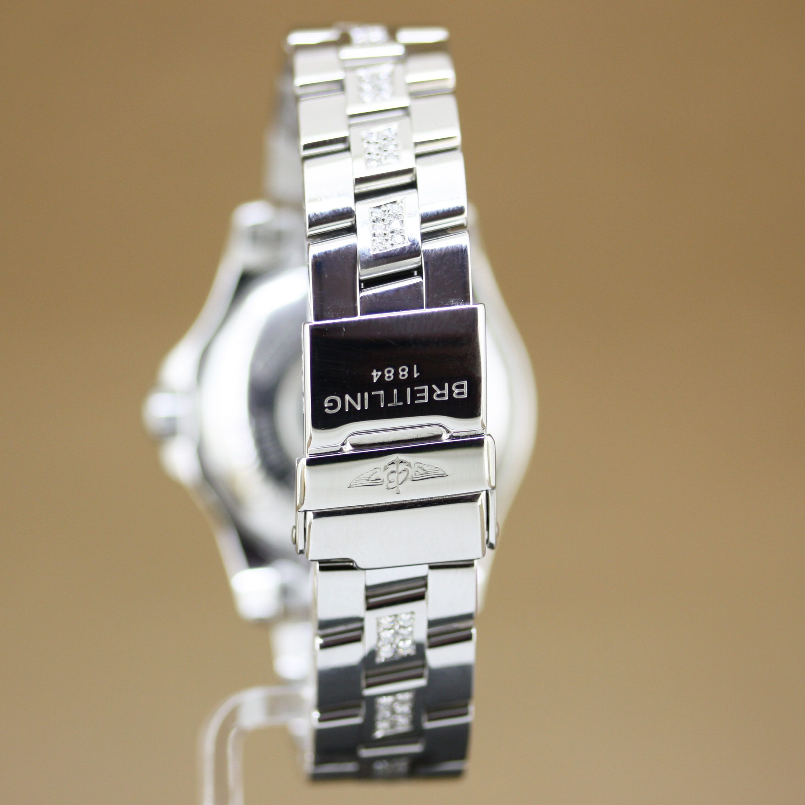 For sale: a Breitling Colt Oceane, reference A77380, in very good condition.This stunning ladies’ model exudes luxury and refinement, featuring natural diamonds set on the bezel, lugs, and stainless-steel bracelet, creating a perfectly balanced and elegant design.