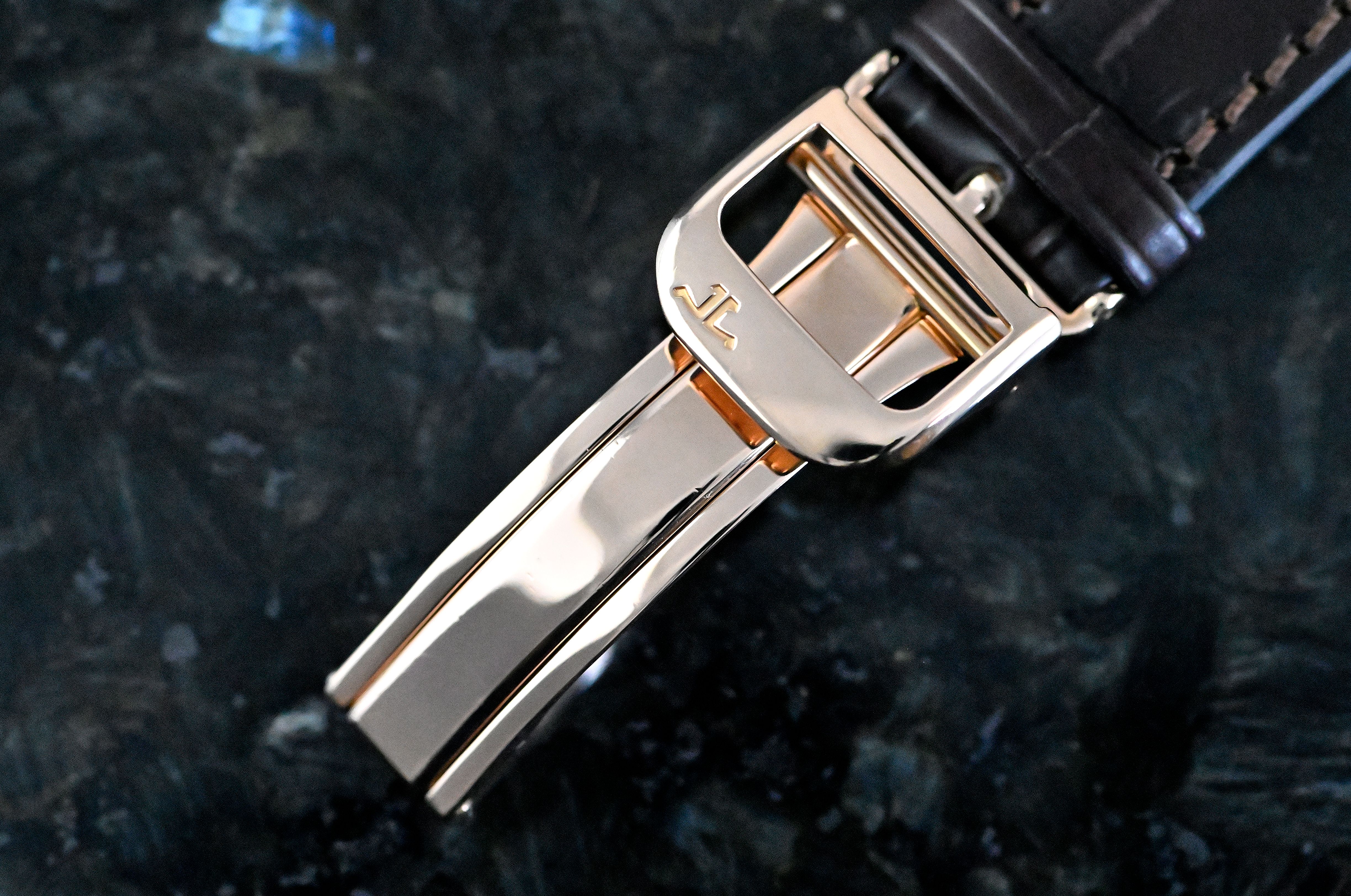 Limitierte Auflage Jaeger-LeCoultre Reverso Géographique | Referenz 270.2.58 | in 18 Karat Roségold aus dem Jahr 1999 | JLC Handaufzugswerk Kaliber 858 (Basiswerk Kaliber 854) | folgende Funktionen: Stunden – Minuten – kleine Sekunde – Tag- und Nachtanzeige – zweite Zeitzone – 24-Stunden-Anzeige | produziert in einer limitierten Serie von nur 500 Stück | zusätzlich zur Géographique wurden fünf weitere Varianten in limitierten Auflagen von 500 Stück produziert: Tourbillon, Septantieme, Chronograph, Minutenrepetition und Ewiger Kalender | umkehrbares Gehäuse, das um 180° geschwenkt werden kann | Abmessungen von 41 x 25 mm | neues dunkelbraunes Alligatorarmband mit der originalen JLC-Faltschließe aus 18 Karat Roségold | gewartet von unserem Meisteruhrmacher im November 2025 | sehr guter Zustand | die Uhr wird mit folgenden Zubehörteilen / Dokumenten geliefert: original Garantieschein (verkauft im Januar 1999 von WEMPE Hamburg) – Livret de Garantie – Certificat D' Authenticite mit der Nummer der limitierten Auflage – Beschreibung / Bedienungsanleitung für die Reverso.