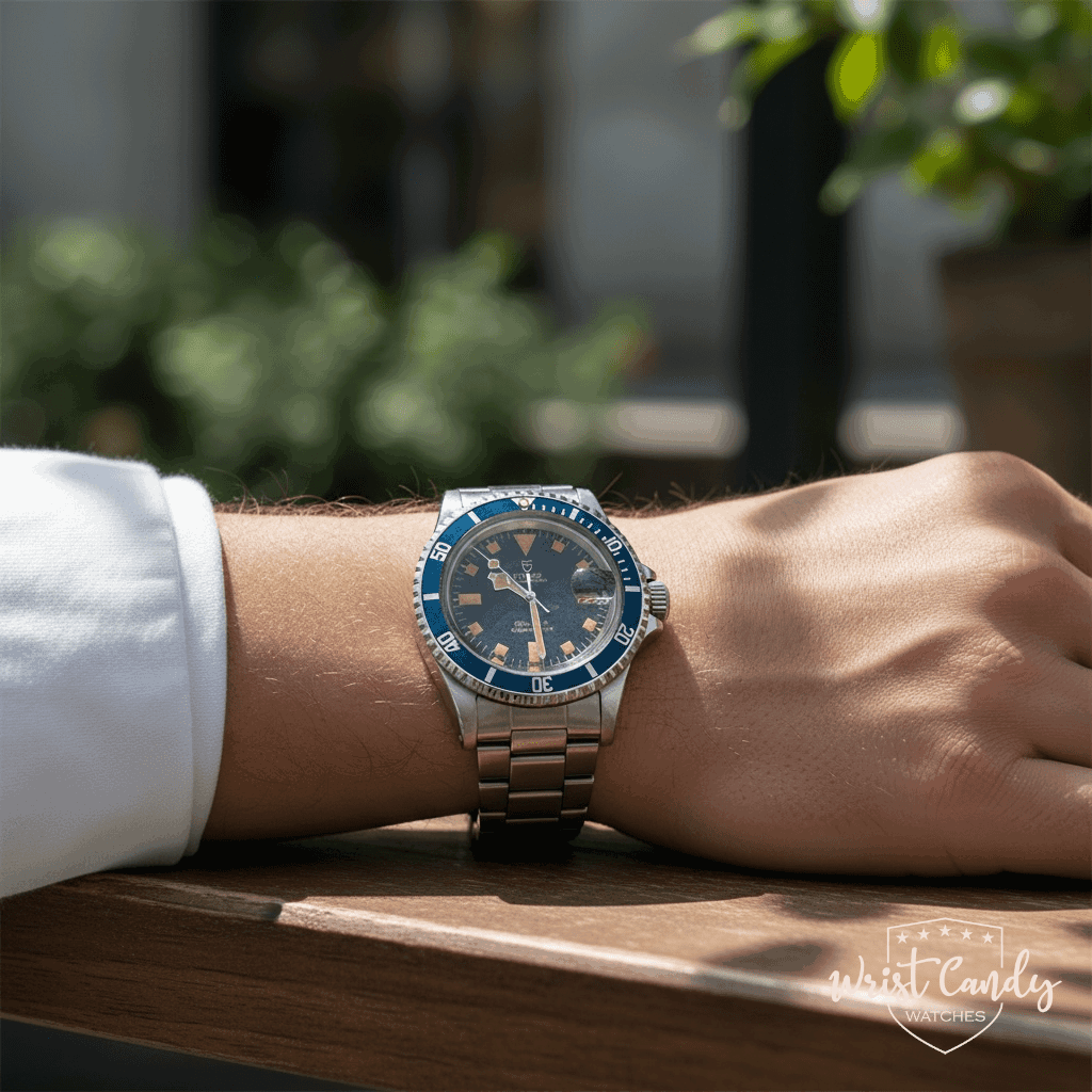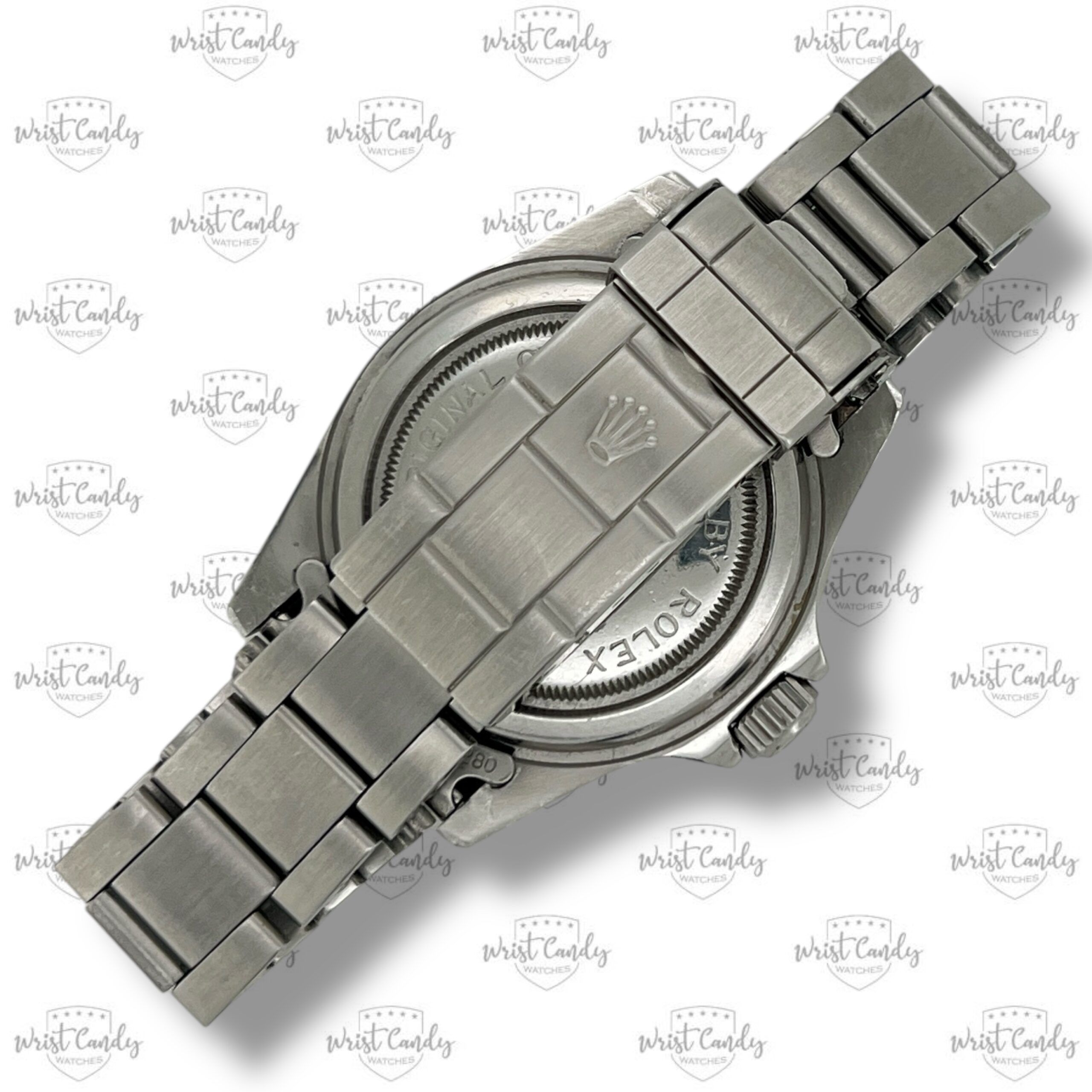 Onlangs volledig door Tempus geserviced. In 1996 is de clasp bij een service vervangen voor een Rolex exemplaar. De Sub heeft folded 7836 oyster band met 280 end links en een roulette datumschijf: afwisselend rood en zwart dus. Past om een pols tot ca. 19cm. Unieke collector set.