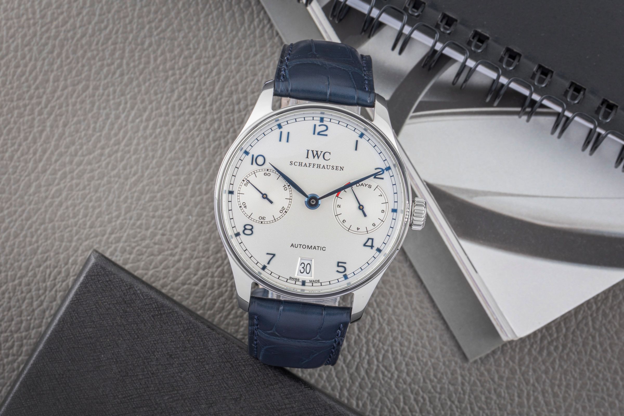 Alternative title: IWC IW500107 Portuguese Automatic Stainless Steel / Silver; IWC Schaffhausen Portugieser 7 Days Automatik Stahl Ref. IW500107 VP: 14000,- € [2506210]