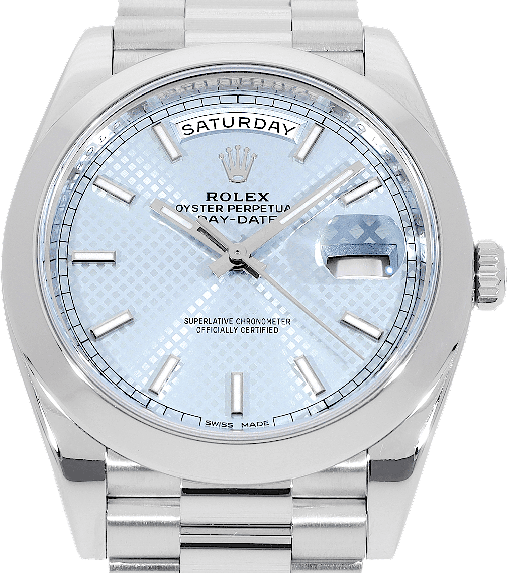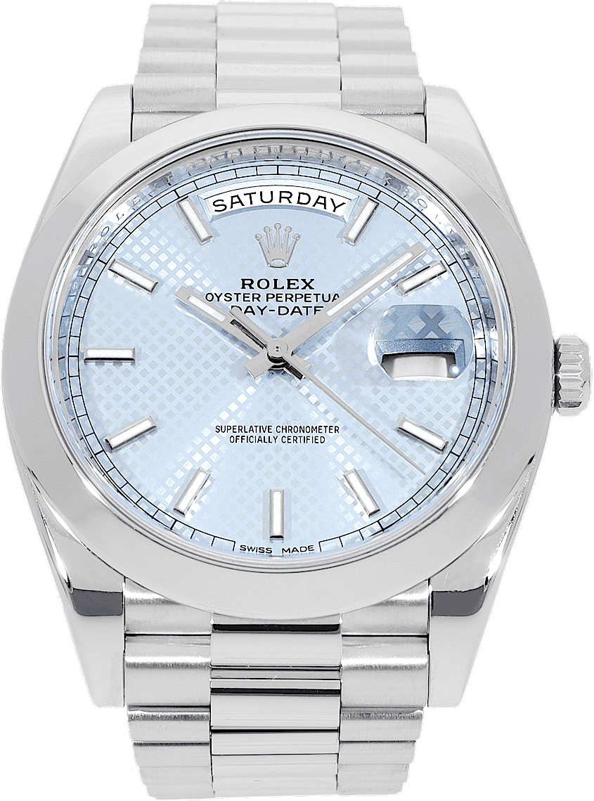 Rolex Day-Date 40, Reference: 228206, Gender: Male, Size: 40mm, Dial color: Blue, Strap material: Platinum, Movement: Automatic, Year: 2015, Condition: Previously worn, minor to no signs of usage. The movement is flawless and the case has been cleaned. watch tested ensure full functionality. An inspection by our certified watchmakers guarantees its authenticity., Documents: Original papers, CHRONEXT Certificate