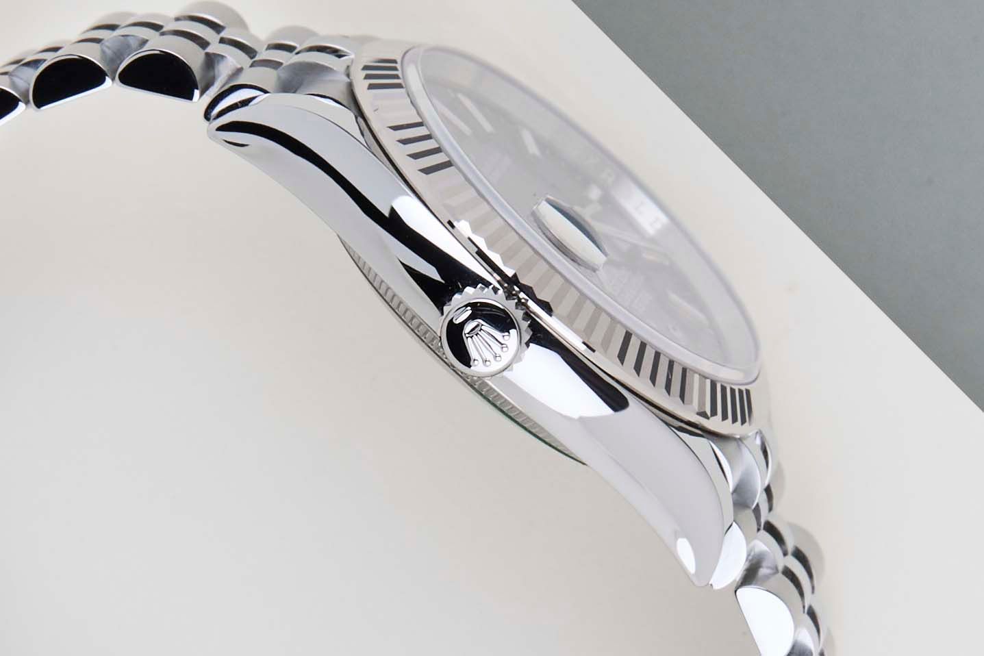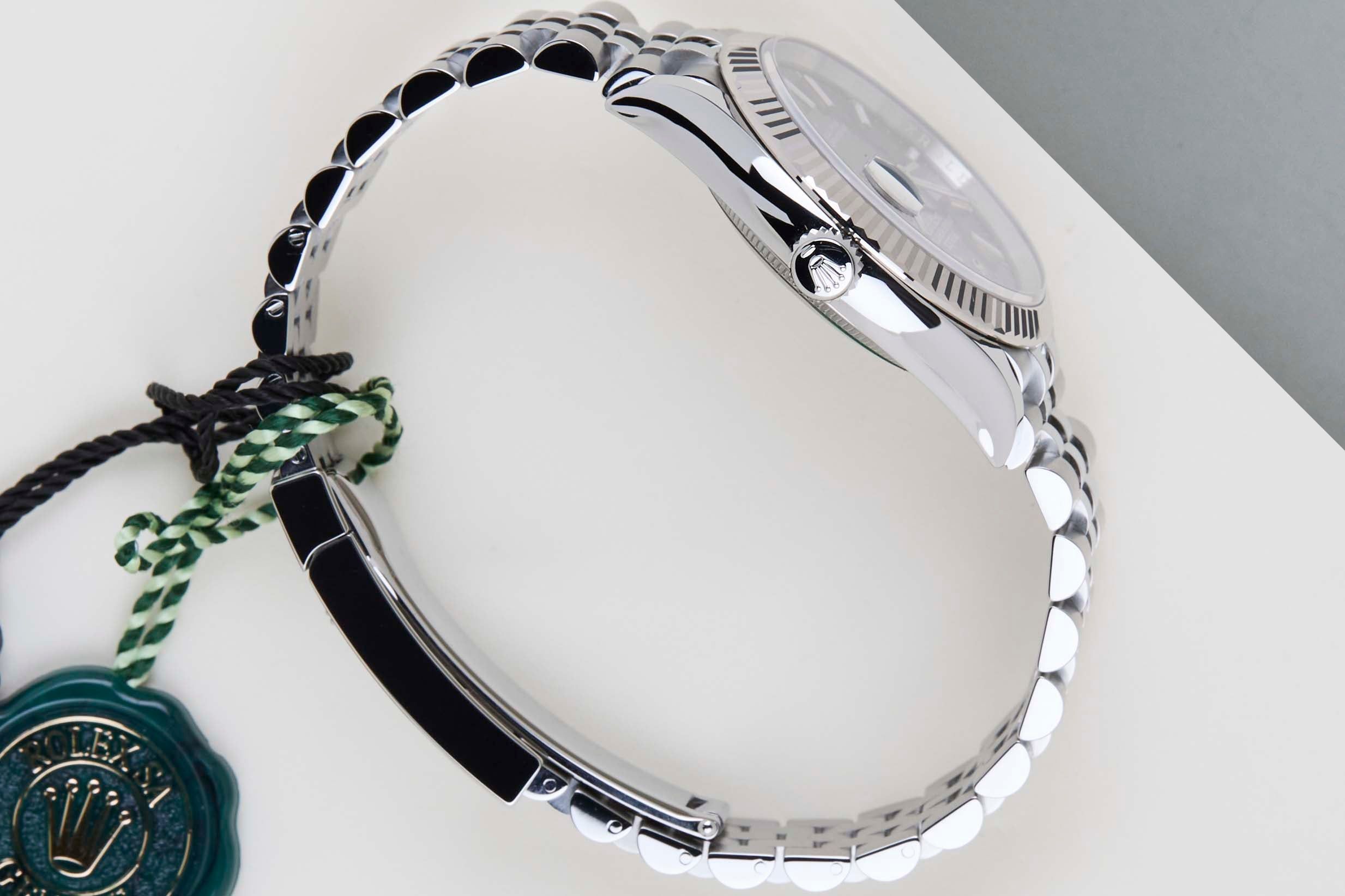 Diese Rolex Datejust 36 befindet sich in neuem und ungetragenem Zustand und wird mit der originalen Rolex Garantiekarte und der Box geliefert. Darüber hinaus hat die Uhr noch eine internationale Rolex Garantie bis November 2030.