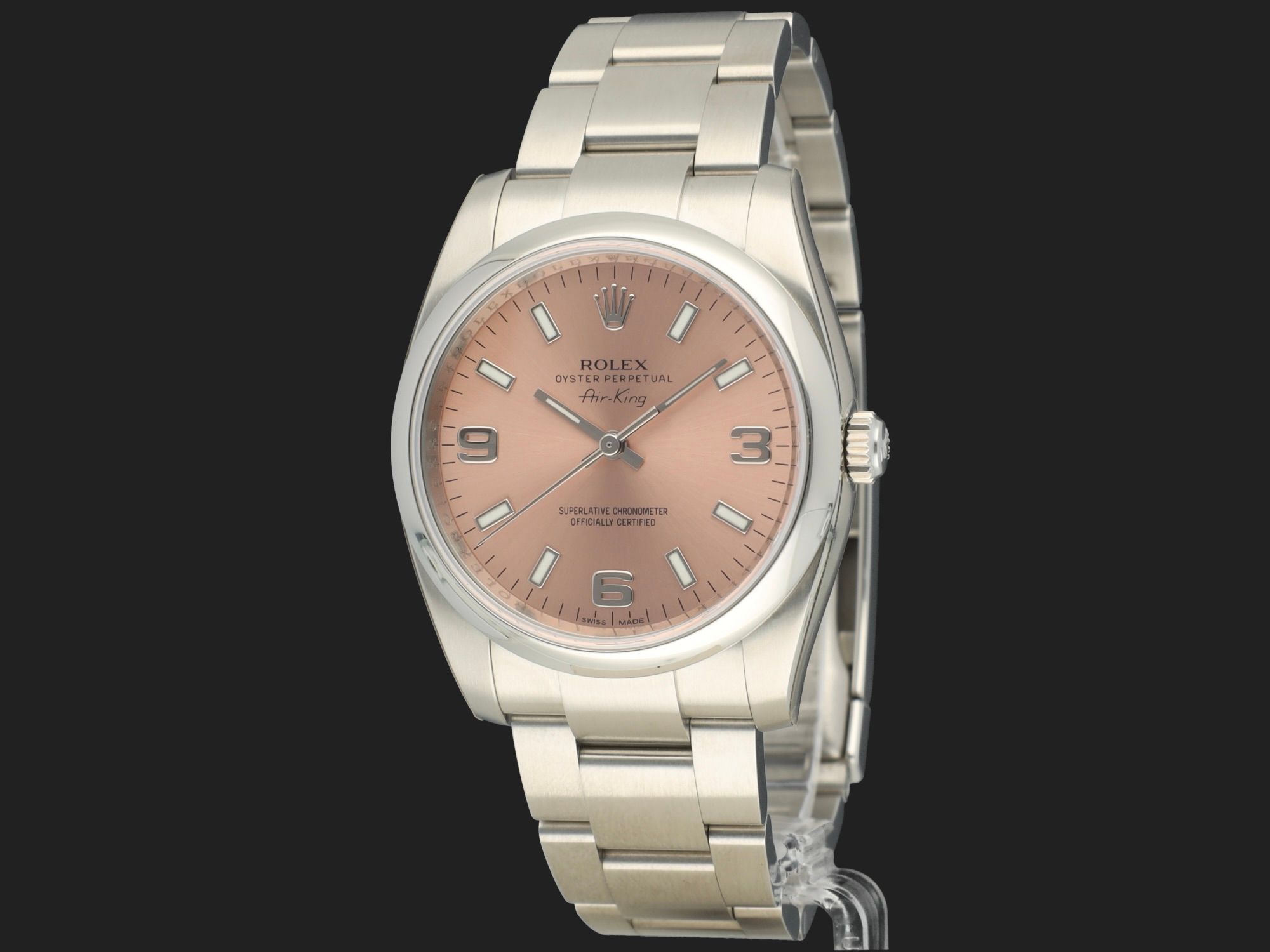 Rolex Oyster Perpetual 34 Air-King 34 Salmon Arab Dial 114200 NOS