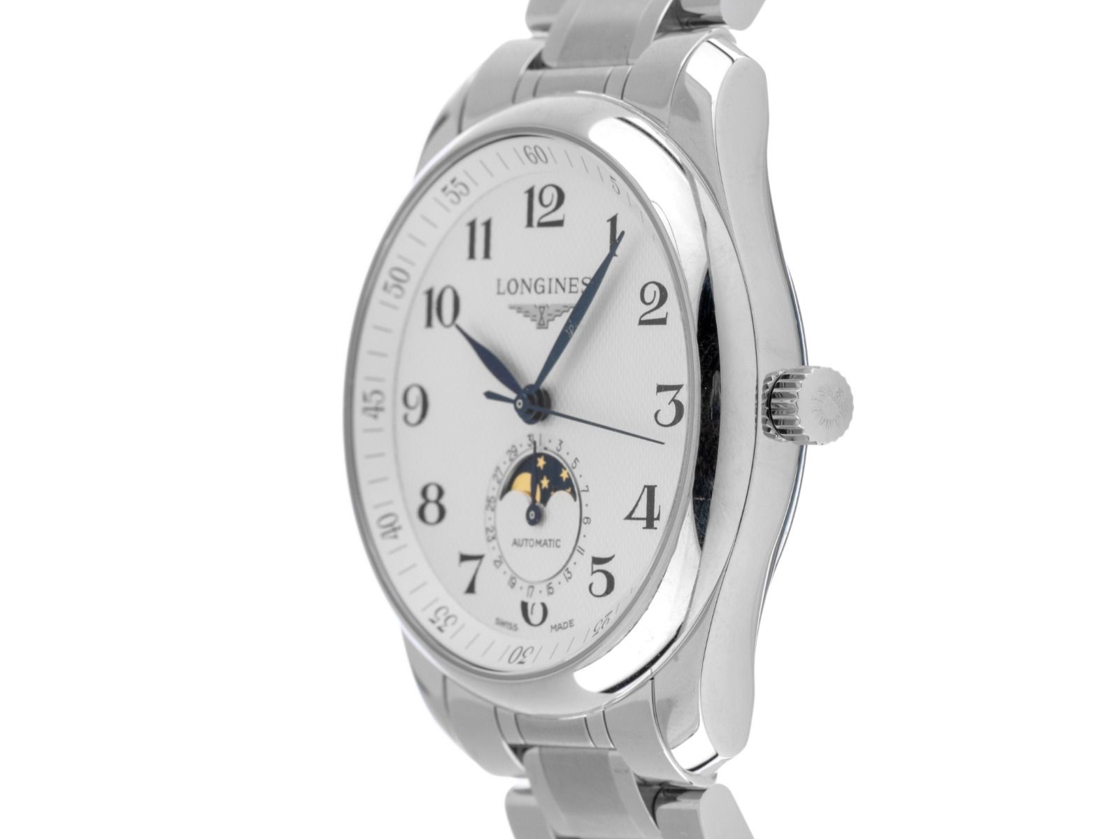 Longines Master Collection Stahl Automatik Armband StahlGehäuse Edelstahl poliert, Gehäusedurchmesser ohne Krone 40mm, Gehäusehöhe 9,6mm. Lünette Edelstahl glatt und poliert. Armband Edelstahl poliert und satiniert, Sicherheitsfaltschließe Edelstahl mit Hersteller-Logo. Zifferblatt silberfarben mit arabischen Ziffern und gebläuten Zeigern. Uhrwerk Automatik, Kaliber Longines L899 mit 21 Edelsteinen, Gangreserve ca. 72 Stunden. Anzeige von Stunde, Minute und Sekunde über Zeiger aus der Mitte mit Sekundenstopp zur sekundengenauen Einstellung der Uhrzeit, Datumsanzeige mit Schnellverstellung bei 6 Uhr, Datums - Mondphasenanzeige bei 6 Uhr. Saphirglas kratzfest. Krone geriffelt mit Hersteller-Logo. Boden Edelstahl graviert mit Saphirglas Sichtfenster. Gewicht der Uhr inklusive Armband 156g, Länge des Armbandes inklusive Gehäuse 220mm. Wasserdicht bis 3 ATM. Referenznummer: L2.909.4.78.6, ID: ST610233601125H-2800, Artikelnummer: 10000083520. Original Longines Box mit Umkarton und Garantie Papiere von 2025, Full Set. Ungetragen. Lieferzeit sofort.