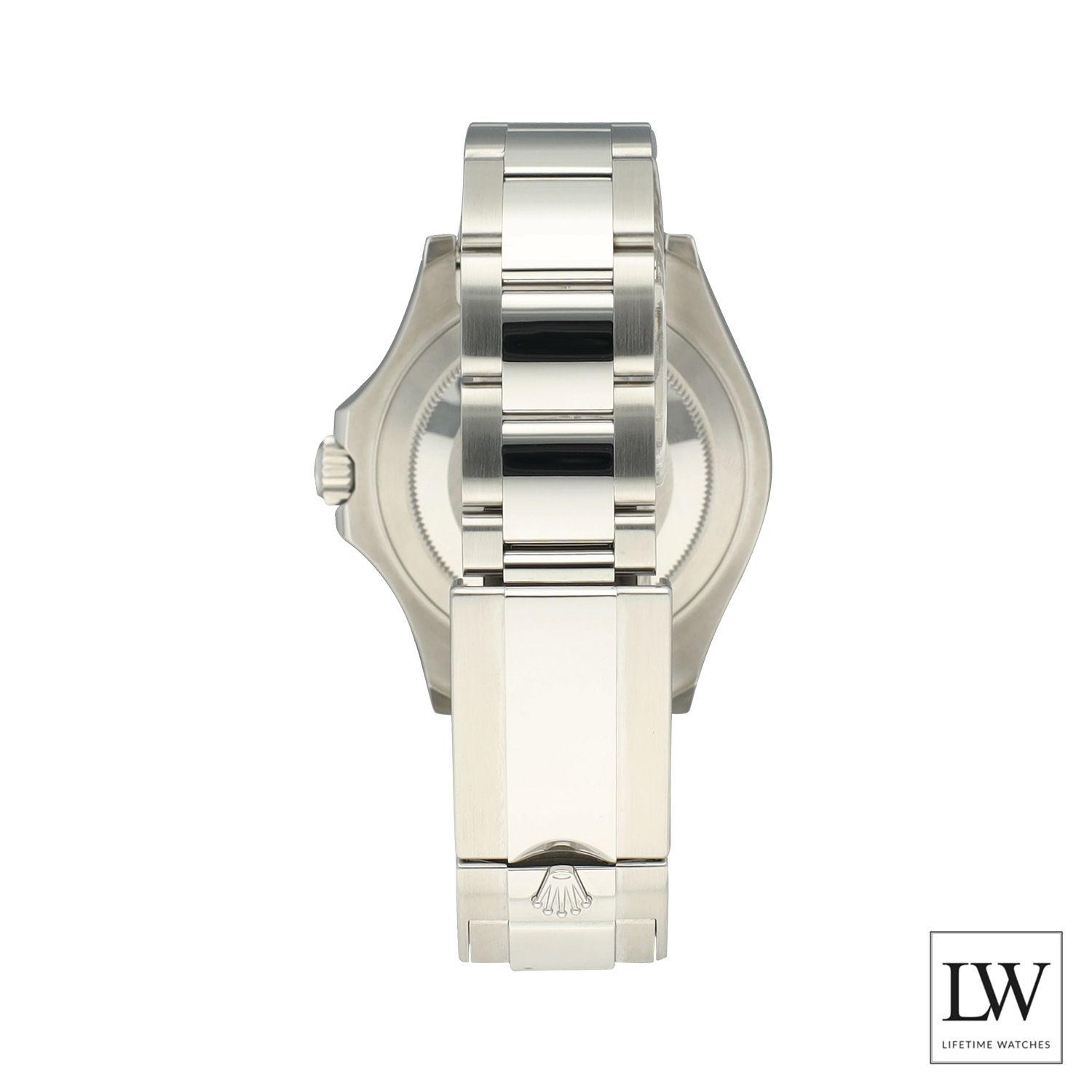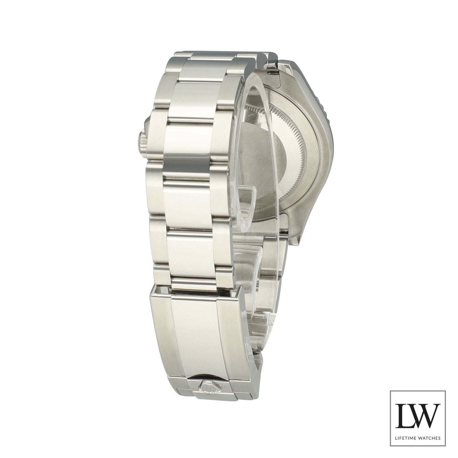 Sie zeigt ein 40 mm Gehäuse aus Oystersteel, ausgestattet mit einer drehbaren Lünette aus Platin und kombiniert mit einem robusten und komfortablen Oyster-Armband.