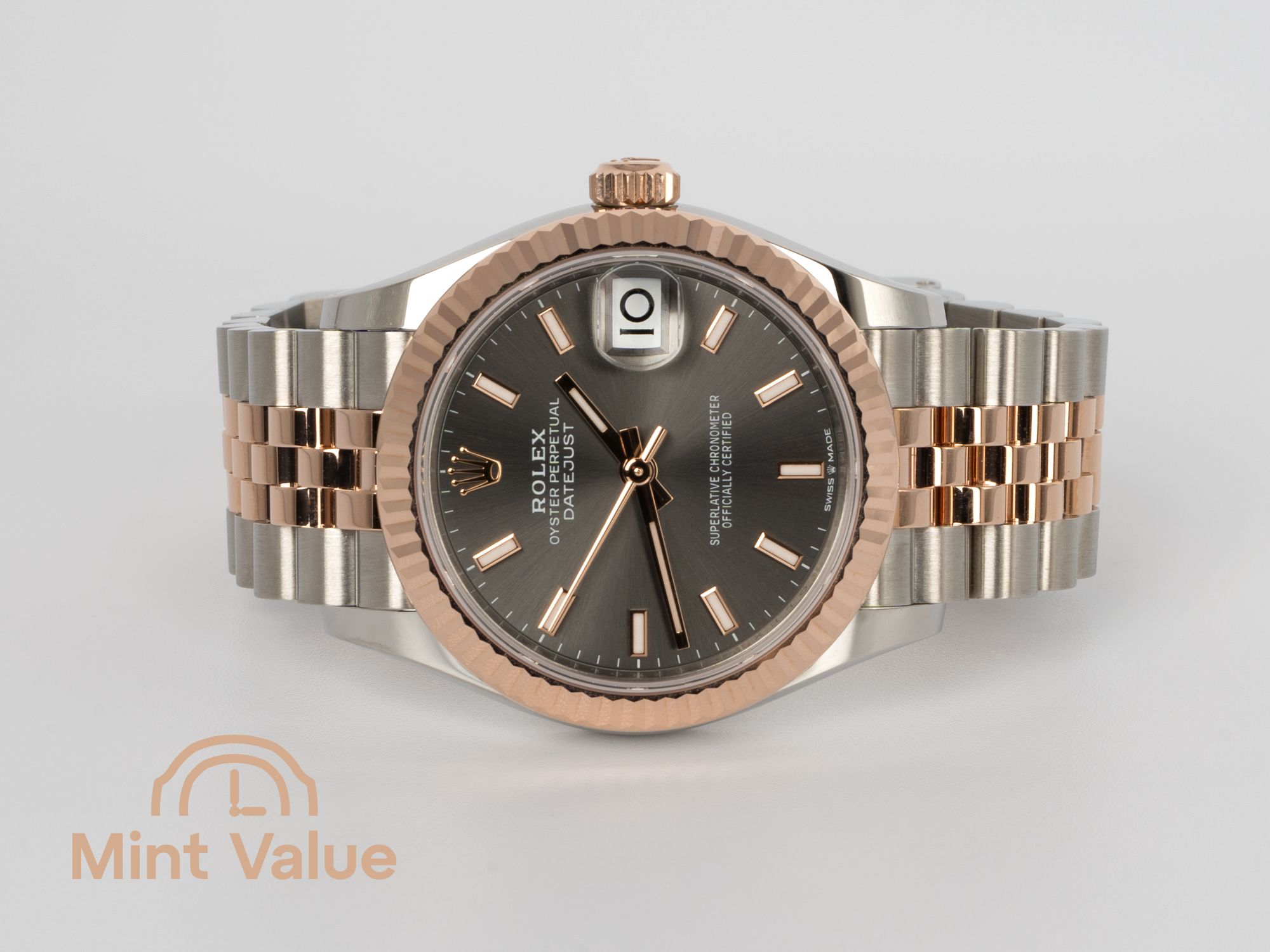 Rolesor (steel + Everose) Datejusts maintain excellent long-term value, and the Slate dial configurations have shown especially strong demand on the secondary market due to their versatility and relatively limited production compared to more common champagne or silver options. The 278271 remains a safe, steady performer for collectors seeking both wearability and value stability.
