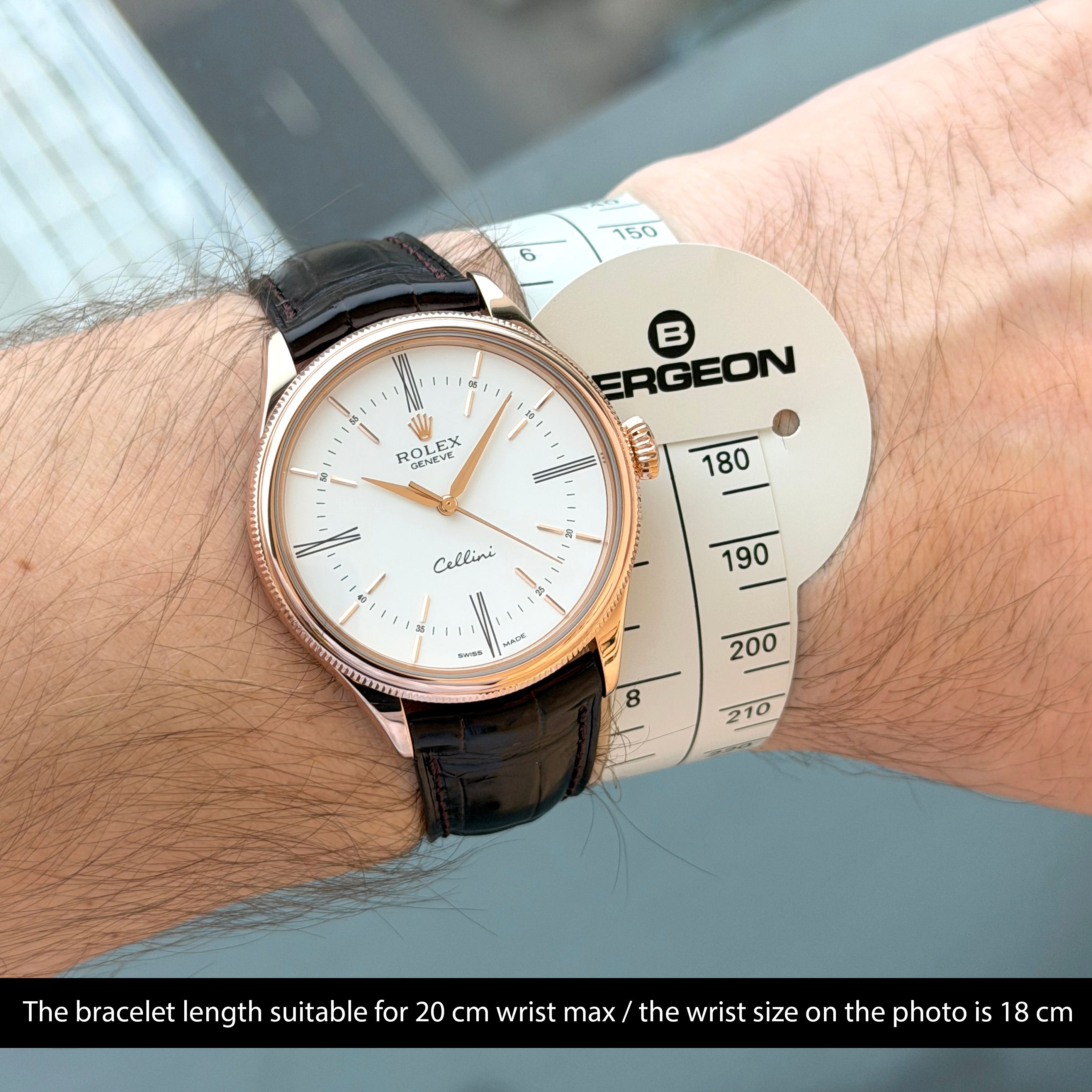 Diese Rolex Cellini Time 50505 verfügt über eine weiße römische Zifferblatt und ist aus 18K Roségold gefertigt, mit einem Produktionsjahr von 2017.