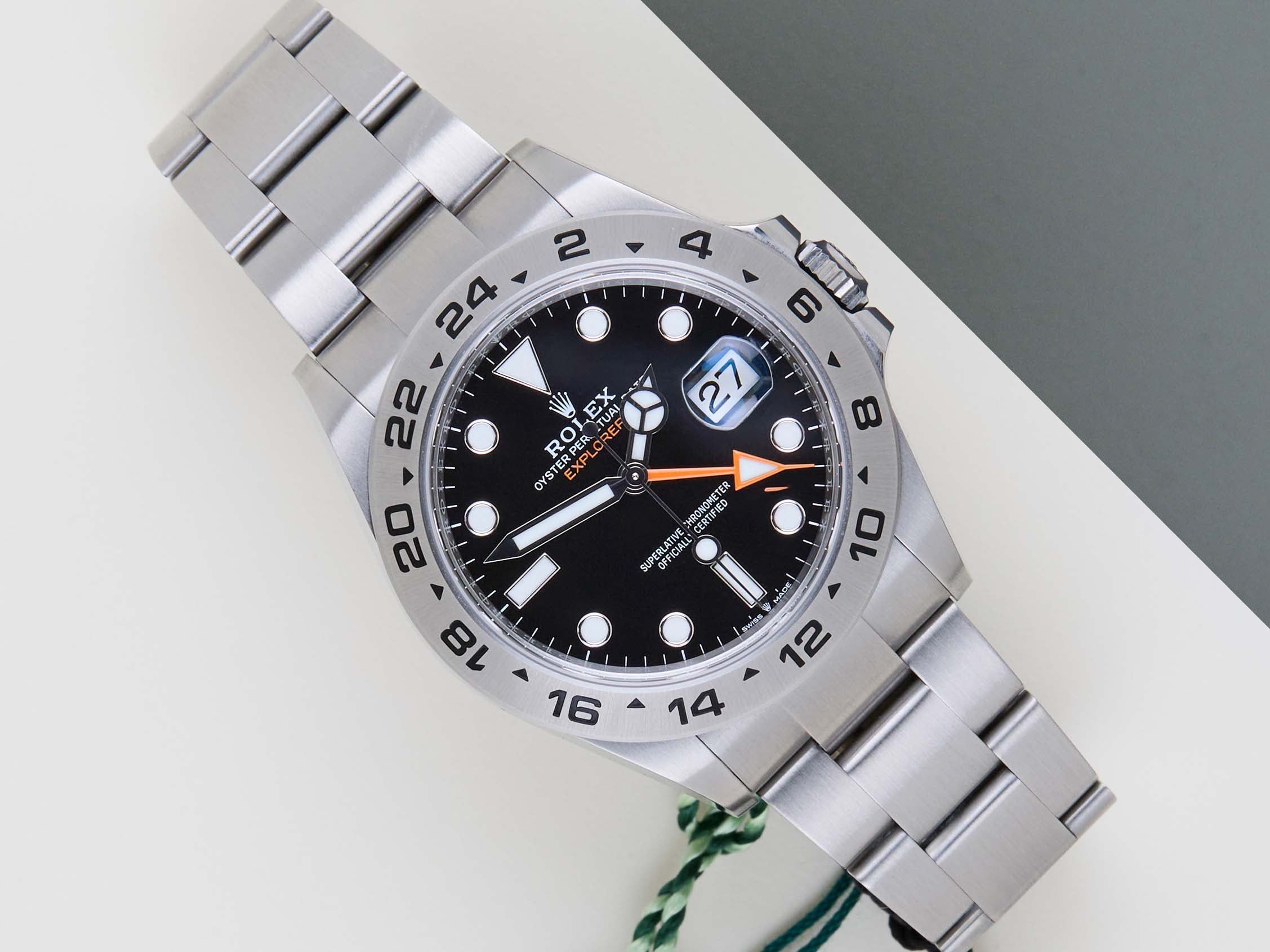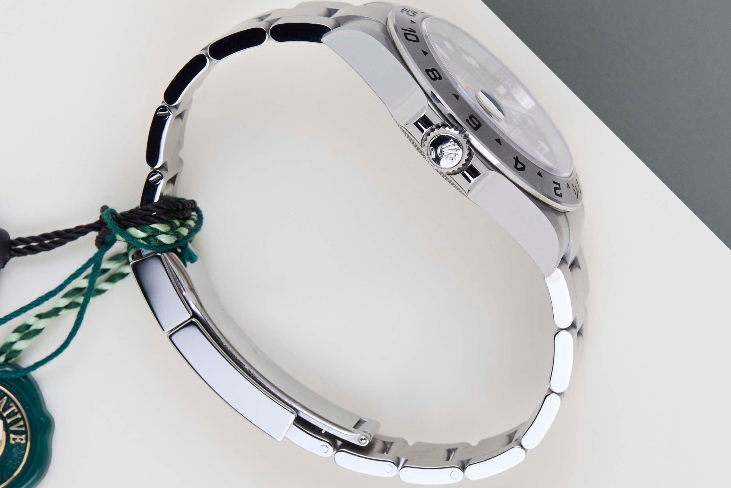 Full Set | International Rolex Warranty Until Augustus 2029 | Including Rolex White TagThe Rolex Explorer II is a popular watch model that was first introduced in 1971 as an extension of the original Rolex Explorer. The Explorer II was designed with professional cave and polar explorers in mind, and features a distinctive 24-hour hand and fixed bezel, which allows the wearer to distinguish between day and night hours.This Rolex Explorer II 'Black Dial' was sold for the first time in August 2024.The Explorer II is fitted with an Oyster bracelet, which is equipped with the Easylink. This extension, allows the wearer to either extend or shorten the bracelet by 5 millimeters, improving the wearability and usability of the watch.This Rolex Explorer II is in Mint condition and comes with the original Rolex Warranty Card and box. Furthermore, the watch still has International Rolex Warranty until August 2029.