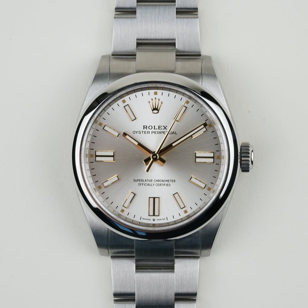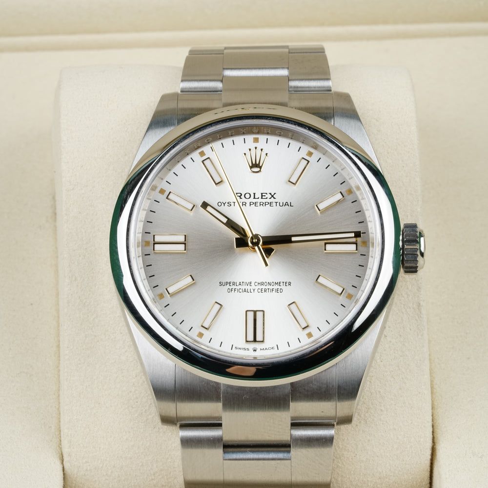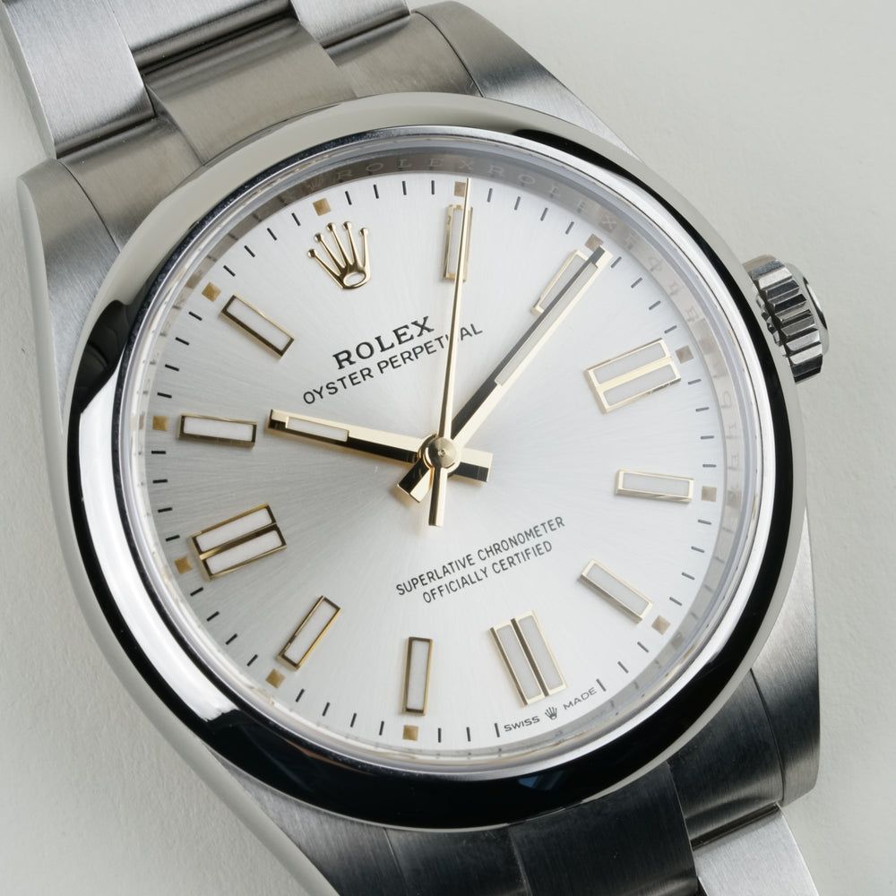 The Rolex Oyster Perpetual 41 134300 exemplifies the essence of Rolex design timeless, precise, and effortlessly refined. Crafted from Oystersteel, the watch features a robust 41 mm Oyster case with a smooth polished bezel, offering both strength and understated elegance. Its Silver dial captures light beautifully beneath a scratch-resistant sapphire crystal, while luminous hour markers ensure perfect legibility. Inside beats the Rolex Caliber 3230, an automatic movement renowned for its accuracy, reliability, and 70-hour power reserve. From 18-10-2025.