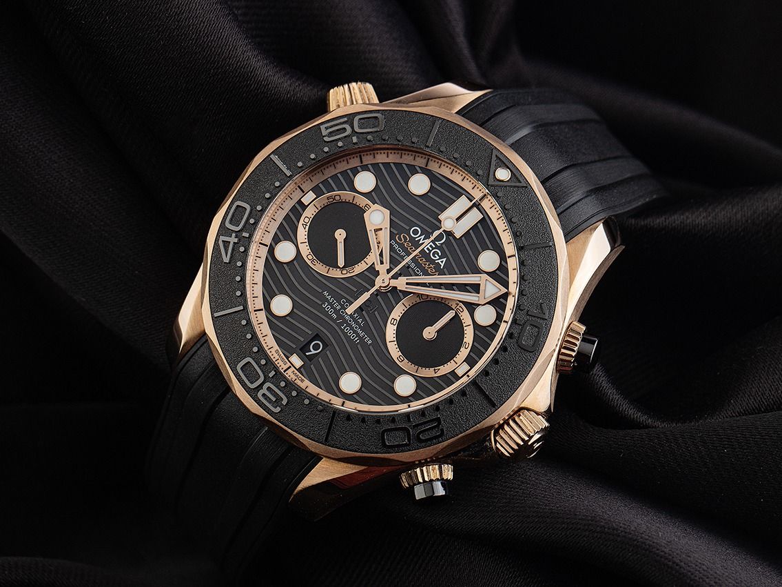 Gehäuse 18kt Sedna™-Gold poliert und satiniert, Gehäusedurchmesser ohne Krone 44mm, Gehäusehöhe 17,6mm. Lünette 18kt Sedna™-Gold mit schwarzem Keramik Inlay, 60-Minuten Skala und Leuchtpunkt, einseitig drehbar. Heliumventil bei 10 Uhr. Armband Kautschuk schwarz, Anstoßbreite 20mm, Stiftschließe 18kt Sedna™-Gold mit Hersteller-Logo. Zifferblatt schwarz mit lasergraviertem Wellen-Muster, aufgesetzten Leuchtindexen und Leuchtpunkten sowie skelettierten 18kt Sedna™-Gold Leuchtzeigern. Uhrwerk Automatik, Chronometer mit Zeugnis, Omega Manufakturkaliber 9901 mit 54 Edelsteinen. Anzeige von Stunde und Minute über Zeiger aus der Mitte, kleine Sekunde mit Sekundenstopp zur sekundengenauen Einstellung der Uhrzeit bei 9 Uhr, Datumsanzeige mit Schnellverstellung bei 6 Uhr. Saphirglas kratzfest, doppelseitig entspiegelt und gewölbt. Krone verschraubbar mit Flankenschutz und Hersteller-Logo. Boden 18kt Sedna™-Gold verschraubt und graviert mit Saphirglas Sichtfenster. Gewicht der Uhr inklusive Armband 188g. Wasserdicht bis 30 ATM. Referenznummer: 210.62.44.51.01.001, ID: P2077380001225H-37300, Artikelnummer: 10000083689. Original Omega Box mit Umkarton und Garantie Papiere von Juli 2022 sowie Beschreibung, Full Set. Ungetragen. Lieferzeit sofort.