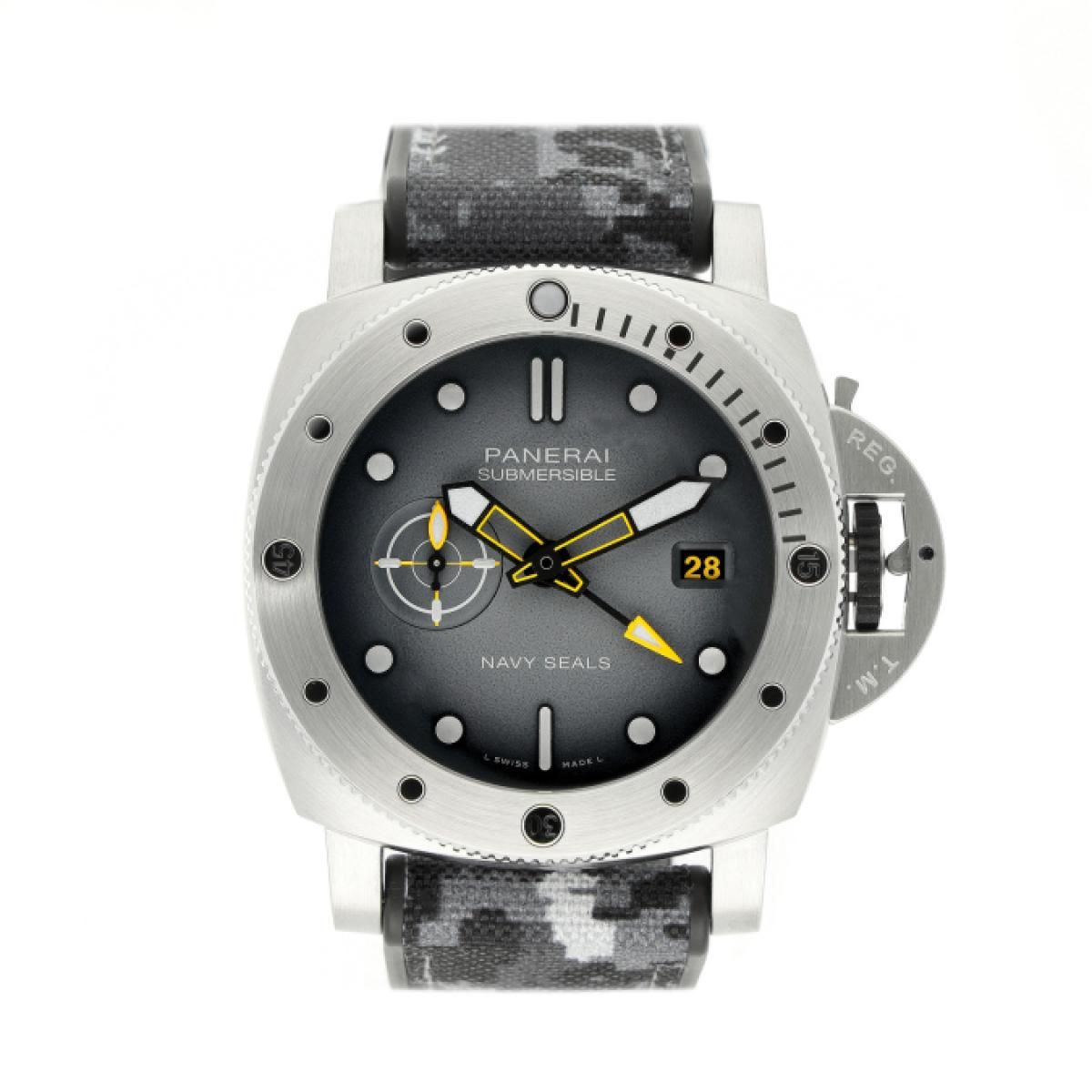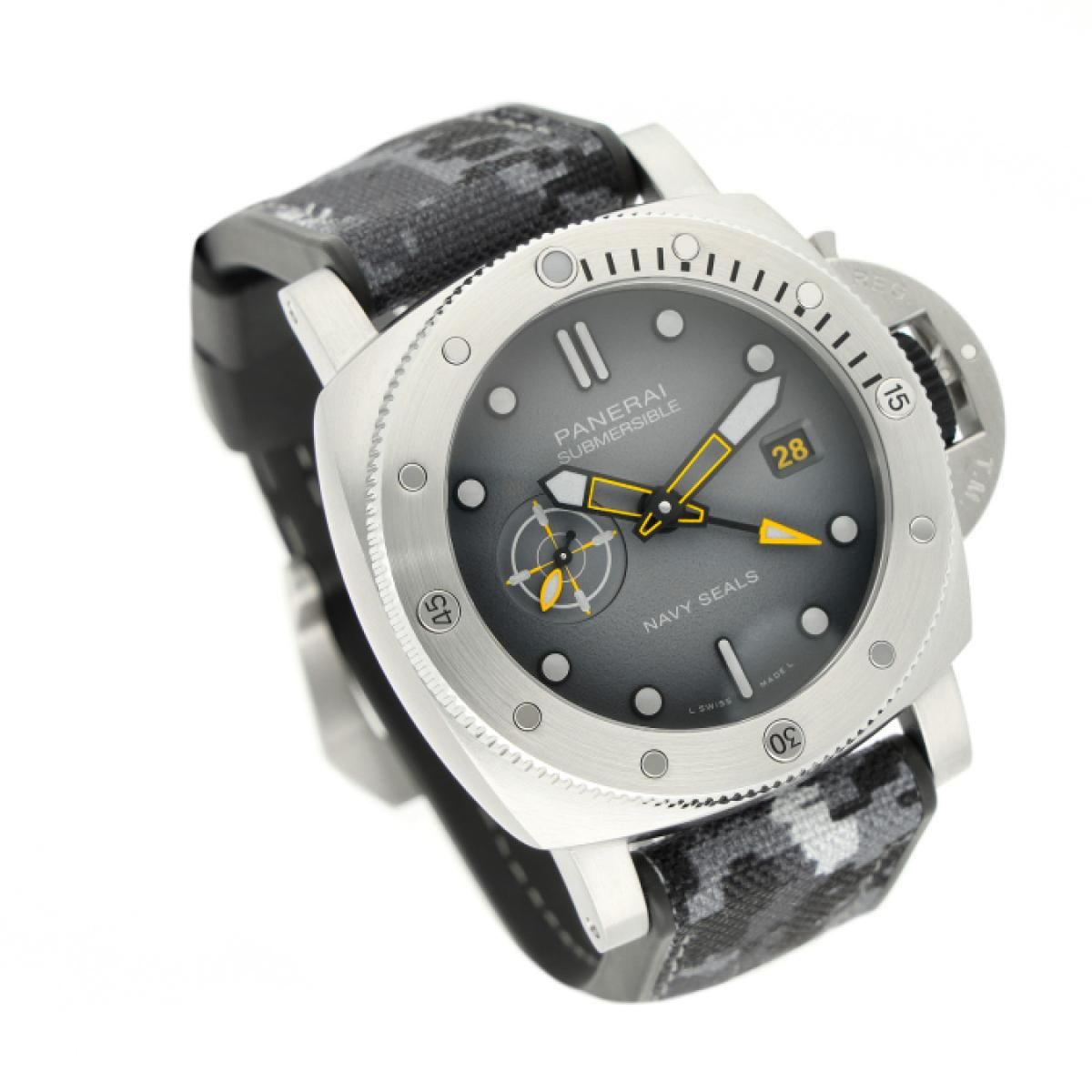 Panerai Luminor Submersible aus 2023 mit einem 44 mm Gehäuse aus Edelstahl und einer Dornschließe. Diese Herren-Panerai-Uhr ist in sehr gutem Zustand.