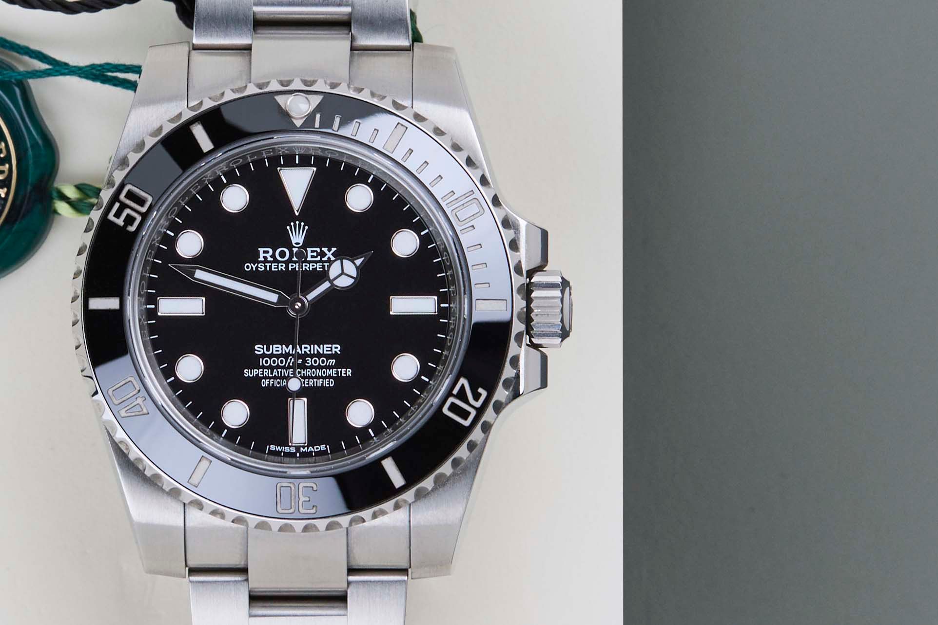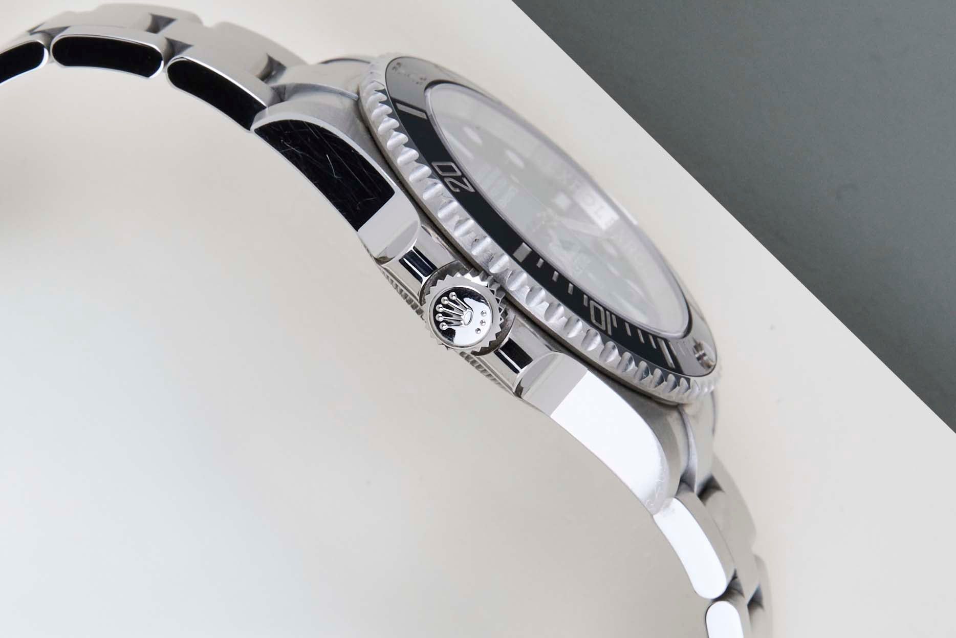 Diese Rolex Submariner No Date ist in unpolierter Bedingung und kommt als vollständiges Set mit der originalen Rolex Garantiekarte und der originalen Box. Darüber hinaus wurde die Uhr von unserem Uhrmacher gewartet und kommt daher mit einem Jahr Steiner Garantie.