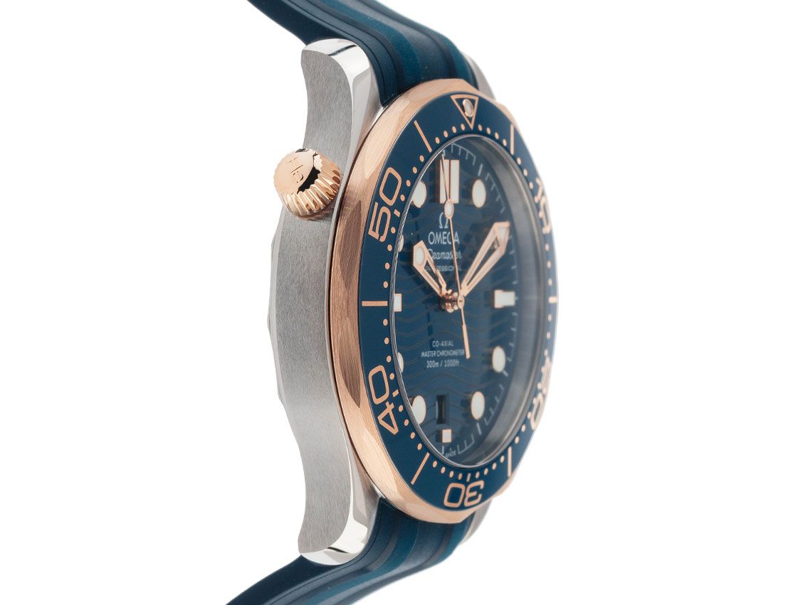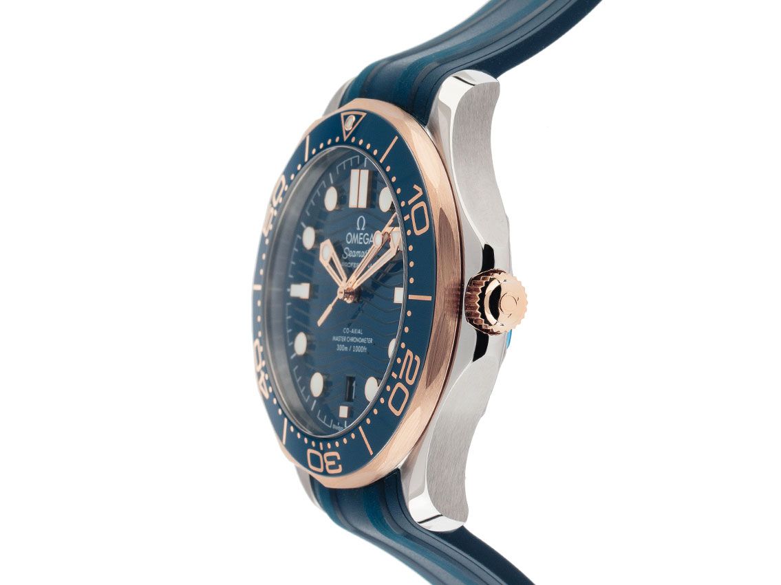 Omega Seamaster Diver 300m Co-Axial Master Chronometer Stahl Keramik Sedna™-Gold Automatik Armband Kautschuk
