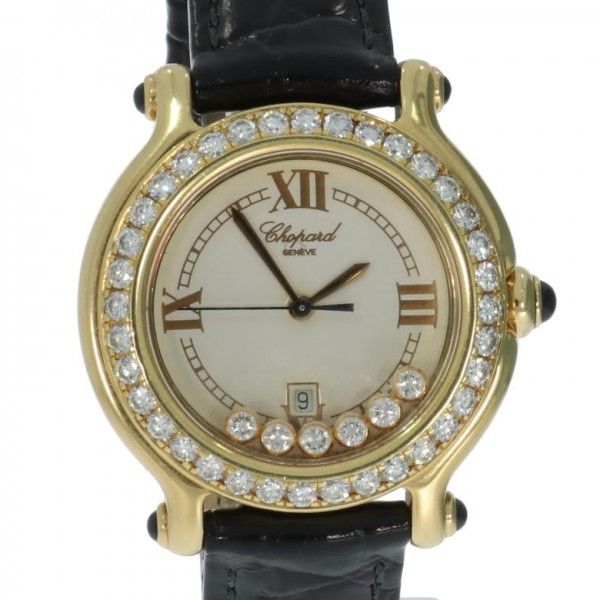 Chopard Happy Sport Midsize Diamonds 27/6144. Kaum getragenes großes Modell Chopard Happy Sport aus Gelbgold mit beweglichen Diamanten. Originale Lünette mit Diamanten besetzt. Neuer generischer schwarzer Lederarmband mit Dornschließe. Wird mit einer luxuriösen Box, einem Zertifikat aus dem Geschäft und 12 Monaten Garantie aus unserem Shop geliefert.