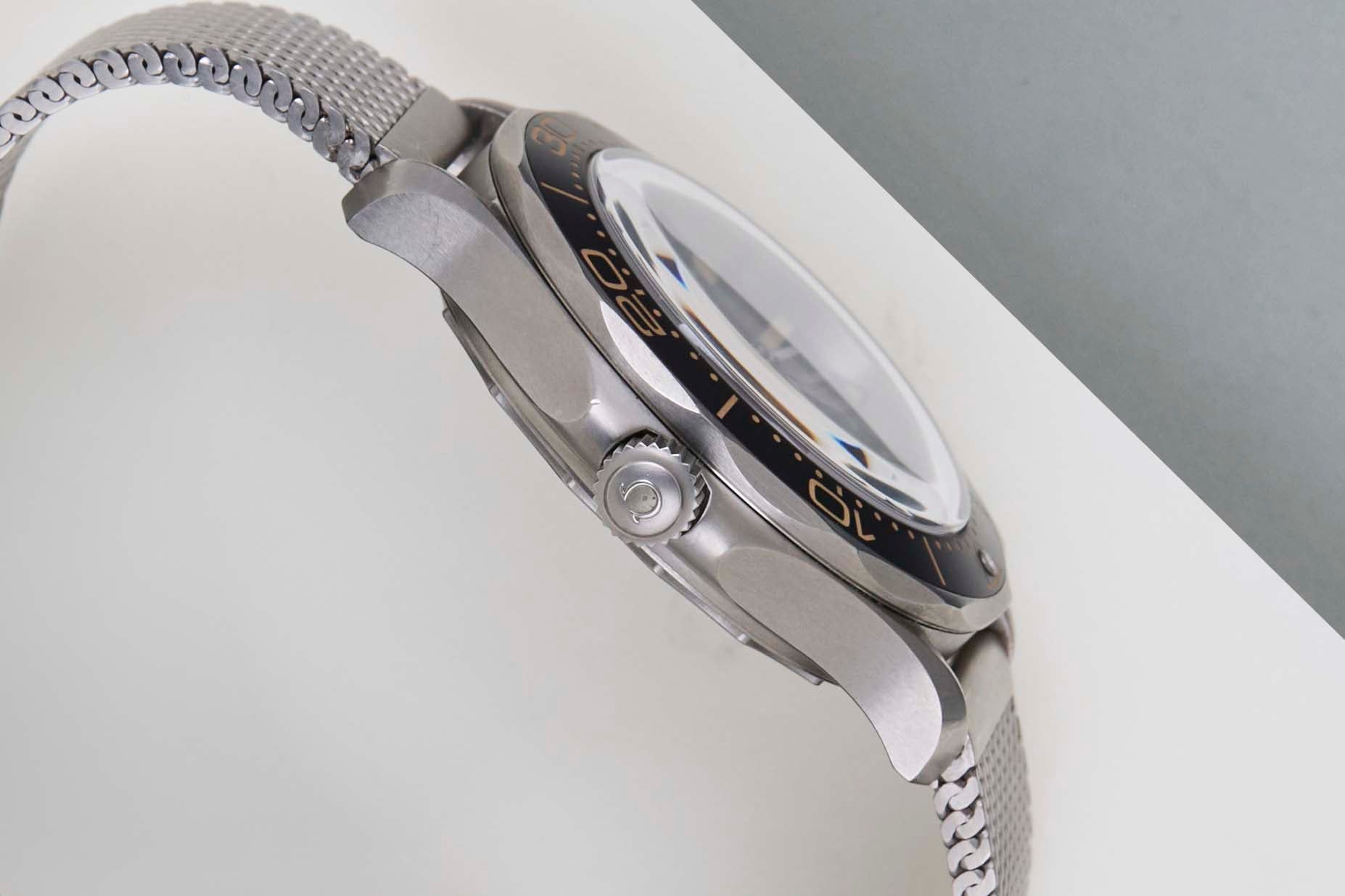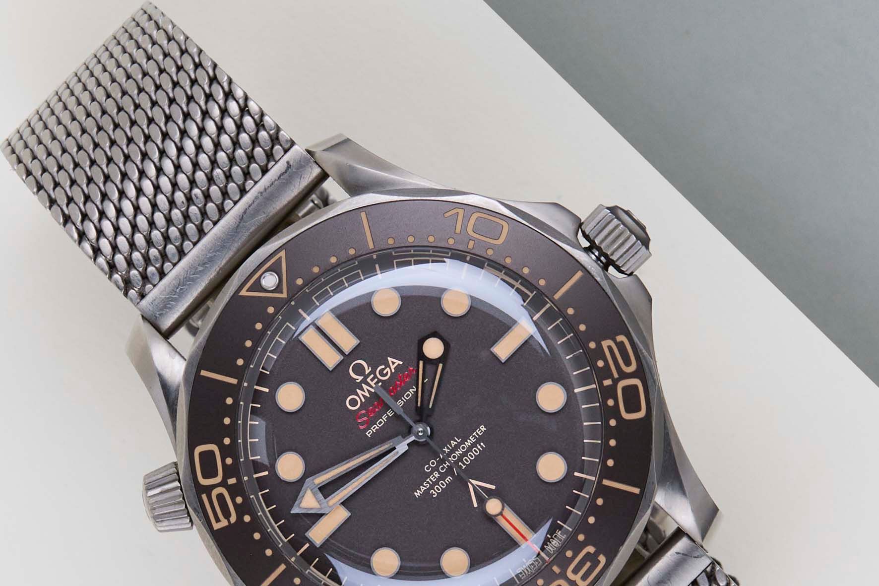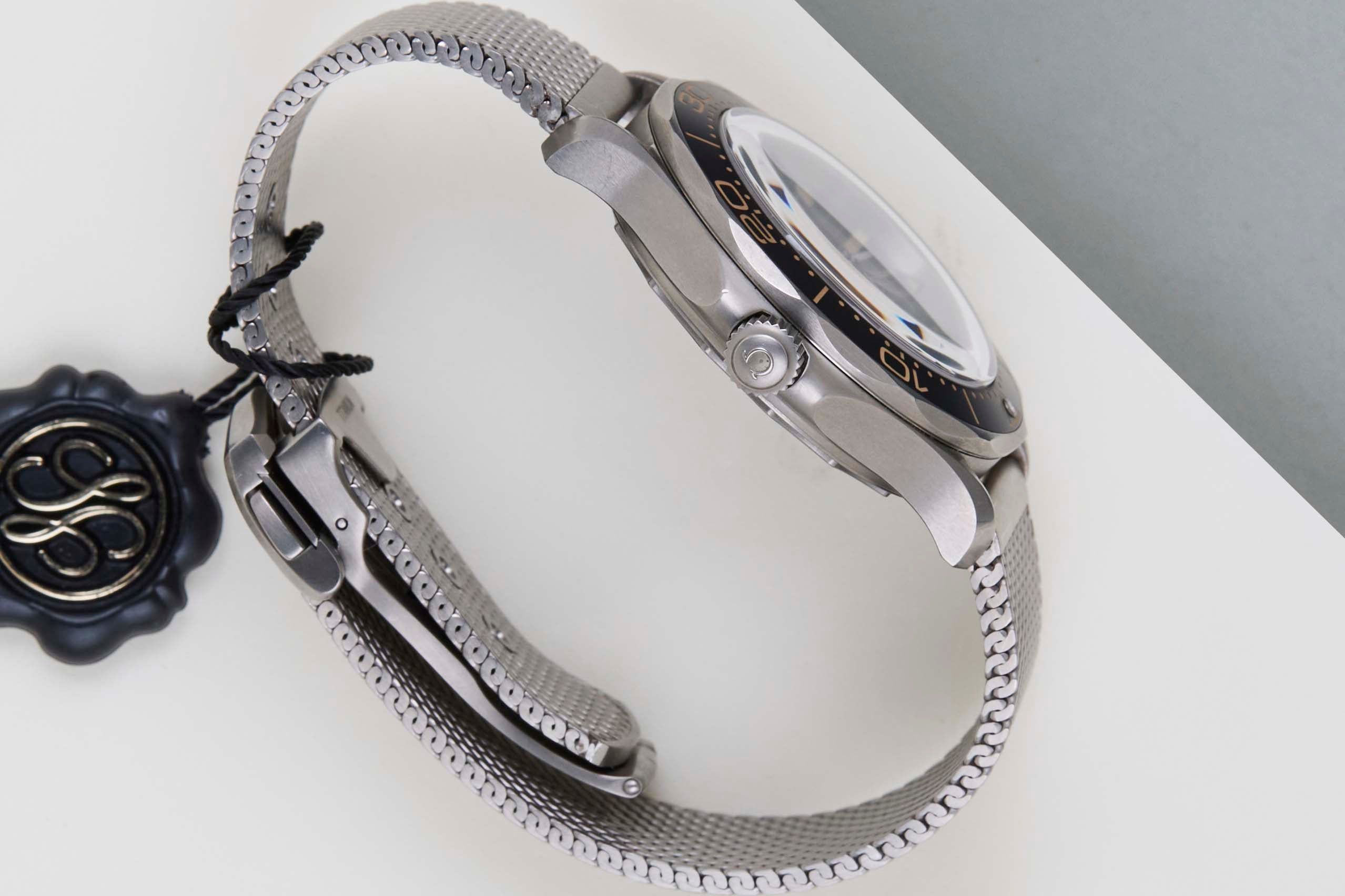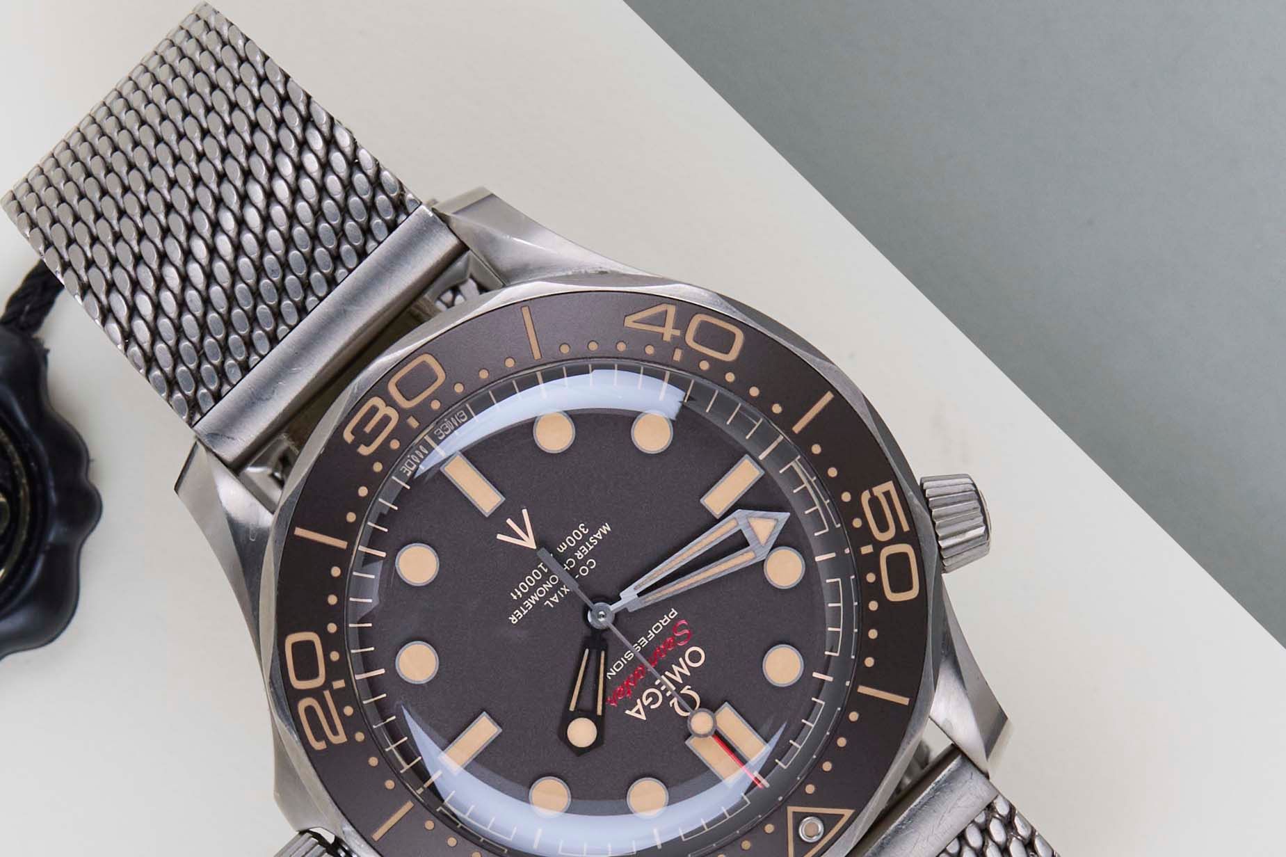 Full Set | Including both Original Omega Titanium and Nato strapIdentical to 007's watch in No Time To Die this 42mm Seamaster, in strong yet light Grade 2 Titanium, sports a brown tropical aluminium bezel ring and dial.Slightly slimmer than the standard Diver 300M models thanks to the doming of the sapphire-crystal glass. The 007-edition Diver is powered by OMEGA's Co-Axial Master Chronometer 8806, which has achieved the industry’s highest standards of precision, chronometric performance - and of course - magnetic resistance.This Omega is in Mint condition and comes with the original Omega Warranty Papers and Box. Furthermore, the watch has been checked by our watchmaker, and therefore it comes with one year of Steiner warranty.