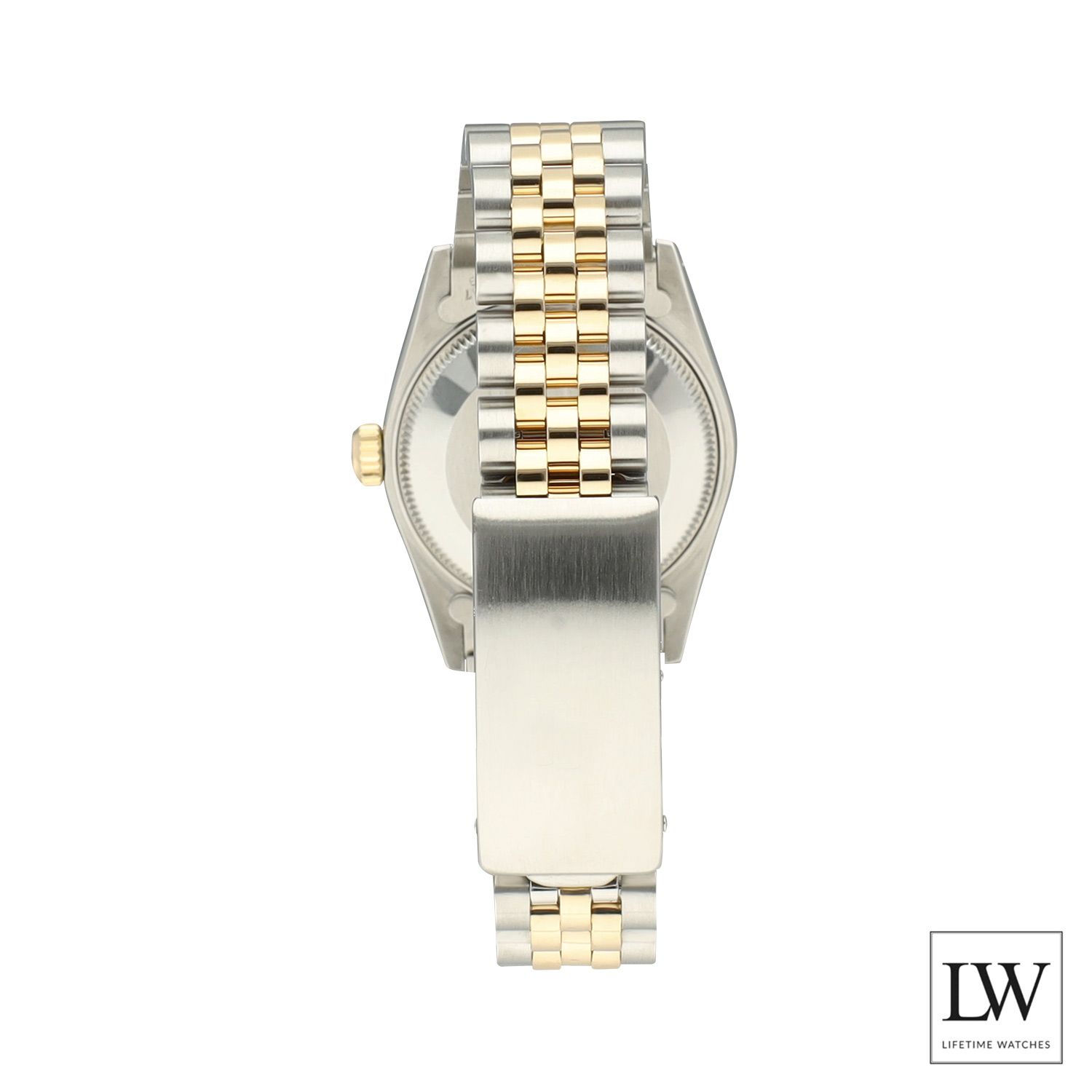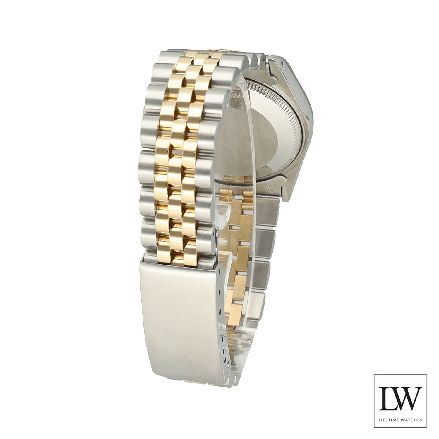 Diese Uhr ist gebraucht und in ausgezeichnetem Gesamtzustand, wobei sowohl das Gehäuse als auch das Armband sorgfältige Gebrauchsspuren aufweisen, die dem Alter entsprechen. Das 31 mm Gehäuse ist aus Oystersteel und 18-karätigem Gelbgold gefertigt, ausgestattet mit einer klassischen gelbgoldenen geriffelten Lünette und kombiniert mit dem ikonischen zweifarbigen Jubilee-Armband für außergewöhnlichen Komfort und Stil.