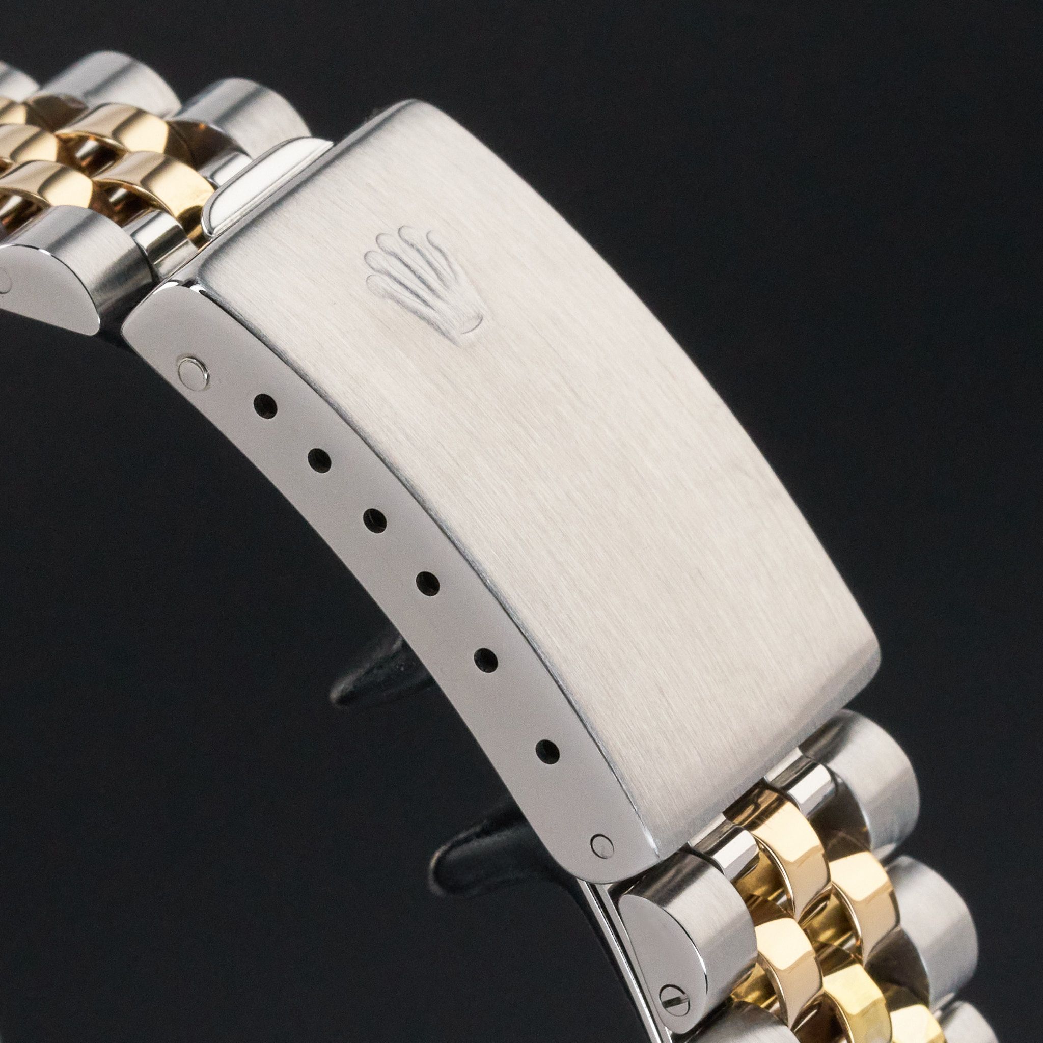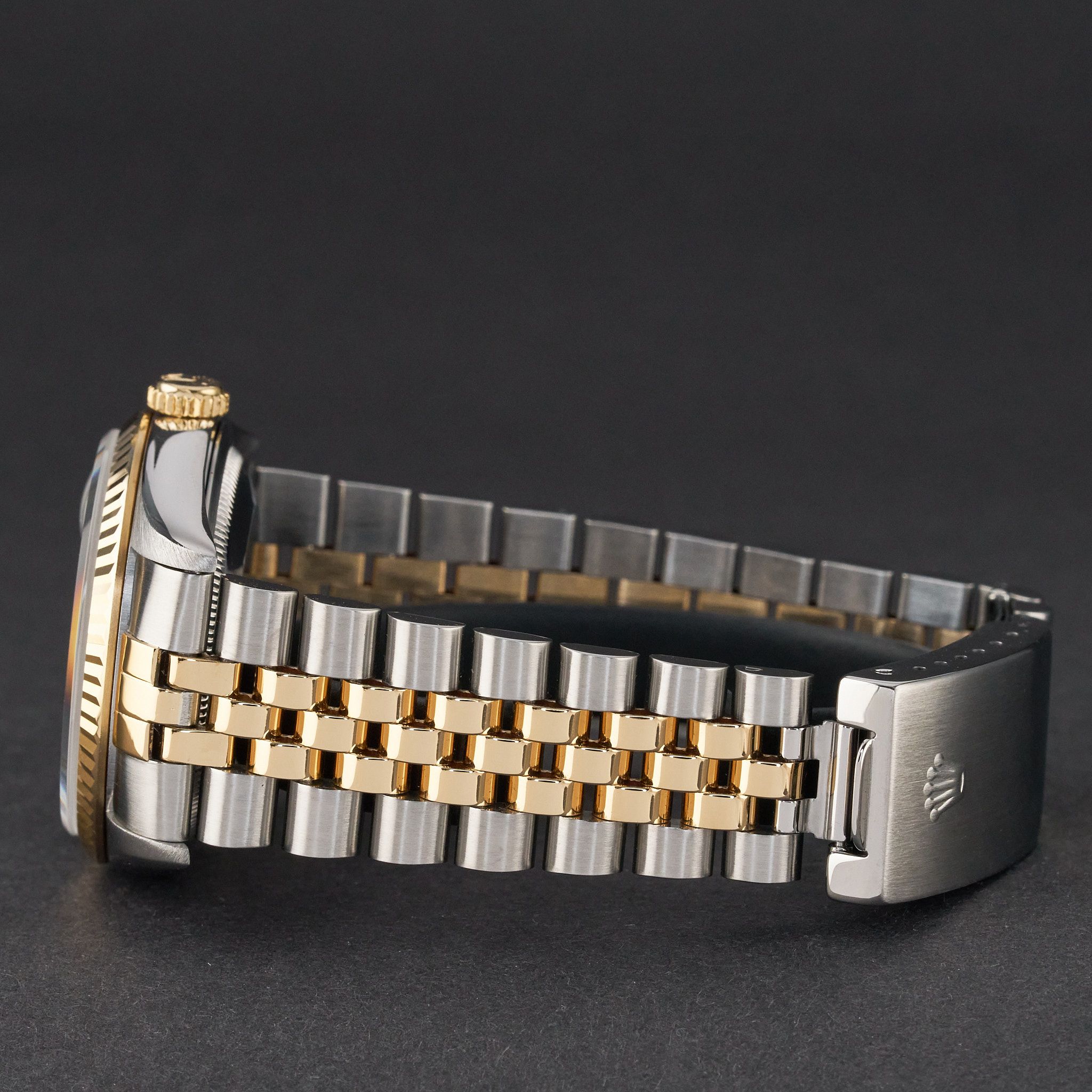 This Rolex Datejust 16233 features a Silver dial and is crafted from 18K yellow gold and stainless steel, with a production year of 1995.Case No: W43XXXX